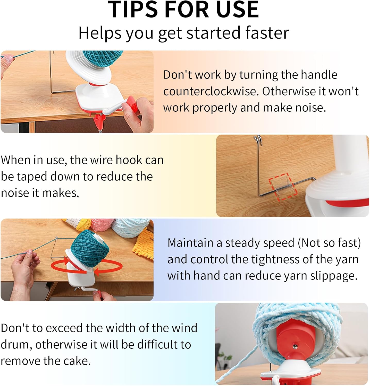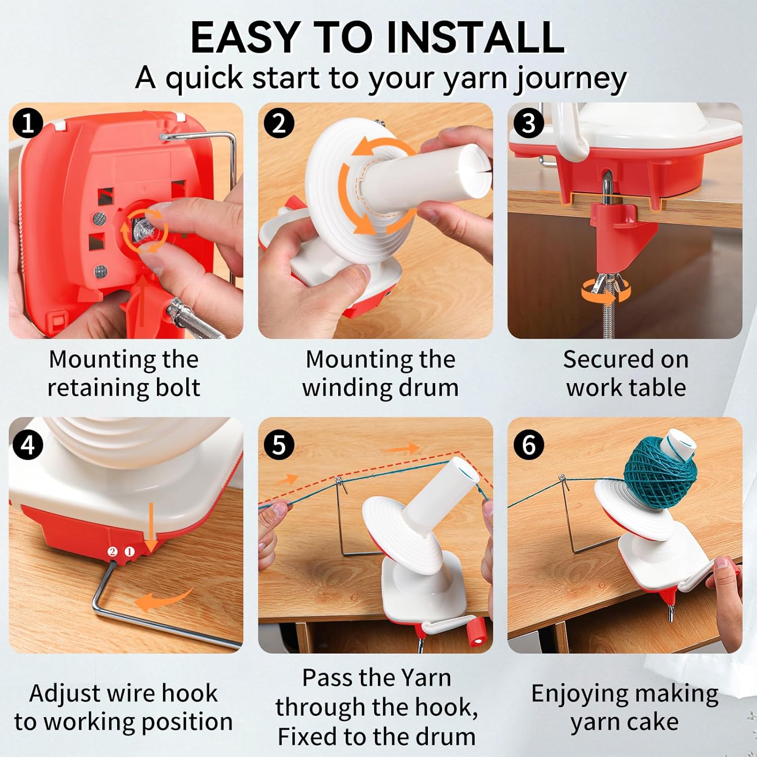 - 【Easy to Install】The yarn winder for crocheting requires only five steps from installation to use, quickly start your knitting journey. Easy to install, reducing your installation woes; Comes with a detailed full-color instruction manual to get you started with the yarn winder faster