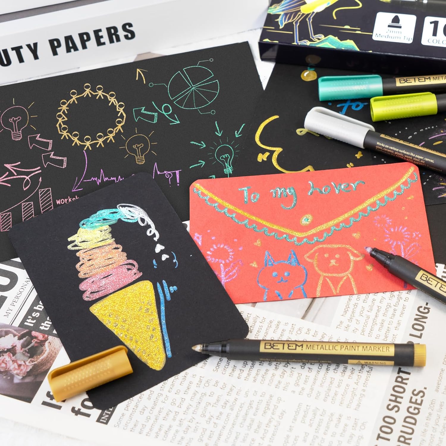 - 【Unique Art Supplies】Betem metallic marker pens are not only adorable and practical gifts for artists, art hobbyists and beginner, but also useful art supplies that can be customized with your own meaningful gifts for Christmas, birthdays, Halloween, Valentine's Day or other special anniversaries.