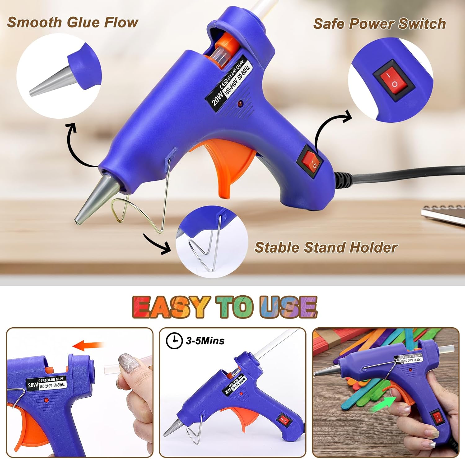 - SIMPLE AND FUN TO USE: Equipped with a glue gun and stick, handicrafts become fast and easy, just use the glue gun to apply hot glue on the popsicle stick. Whether at home or in the classroom, it can bring children a pleasant and hands-on DIY experience.