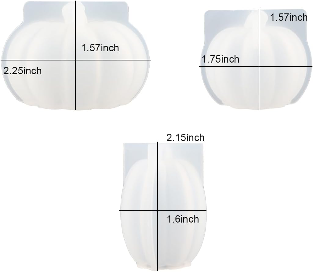- Pumpkin Resin Molds Set: Our package includes 3 silicone pumpkin resin molds in different sizes. The dimensions are:2.25 x 1.57 inch, 1.75 x 1.57 inch, 2.15 x 1.6 inch.