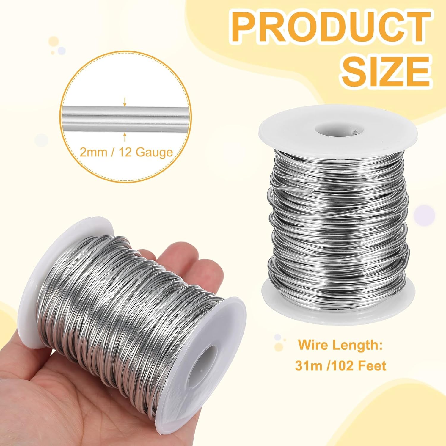 uxcell 12 Gauge / 2mm Anodized Aluminum Wire for Jewelry Craft Making, 102 Feet Bendable Flexible Wire for DIY Home Decor Gardening Sculpture, Silver