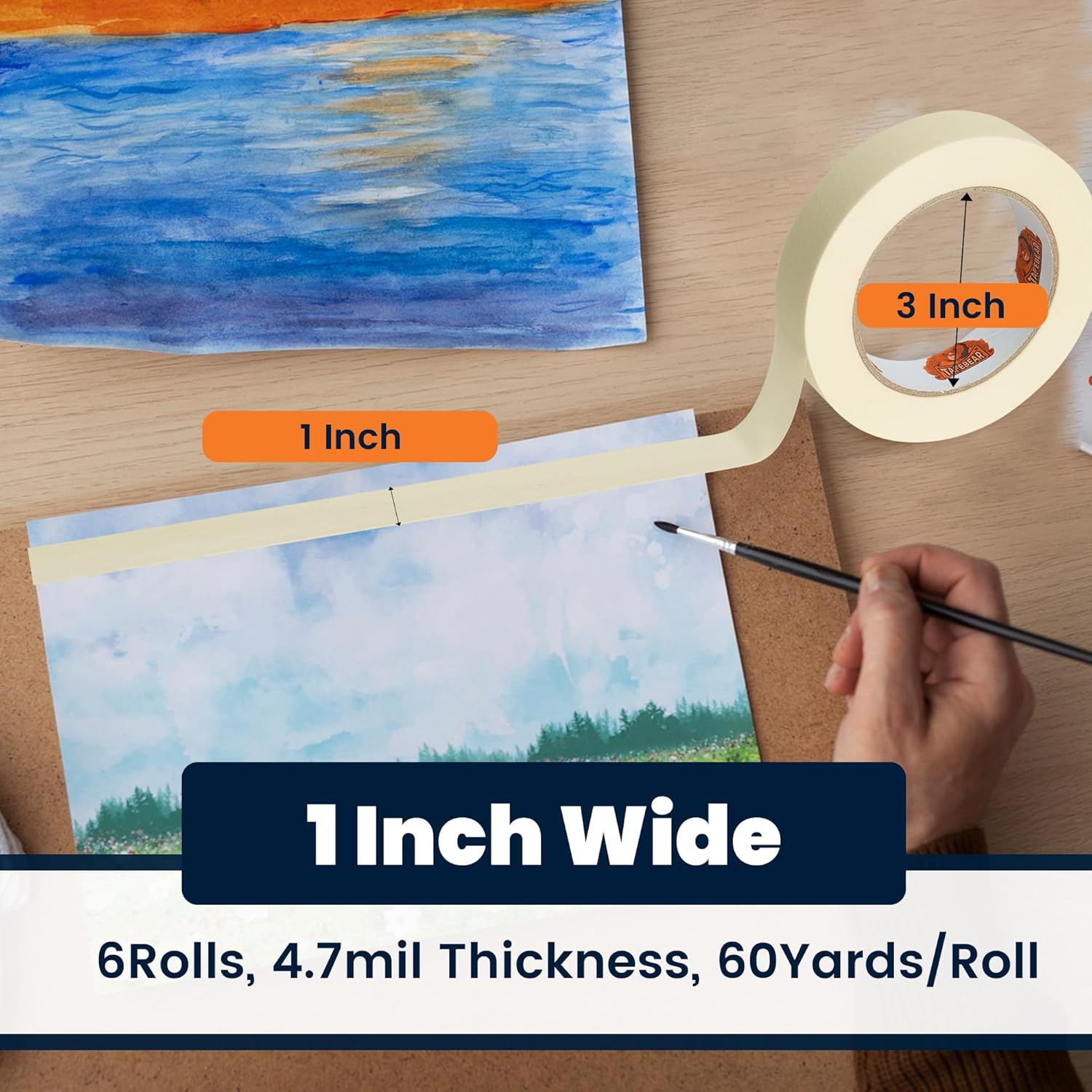 - ONE PACK, 6 ROLLS: Our general purpose beige white paint tape set comes with 36 rolls. The thickness of masking tape is 4.7mil, each roll measures 1 inches in width and 60 yards in length. Long enough for your different needs. Great for crafts, arts, DIY projects, organizing, decorating etc.