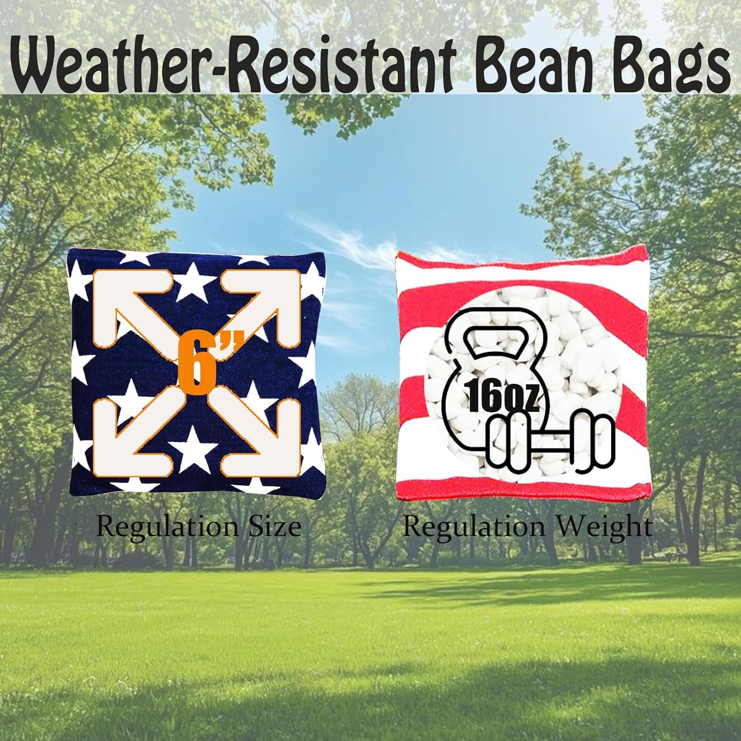 - Portability Cornhole Set-The regulation-size cornhole sets featuring a collapsible design with carrying case, and also include storage bags for the bean bags,making it convenient to transport and set up for outdoor activities like camping and tailgating