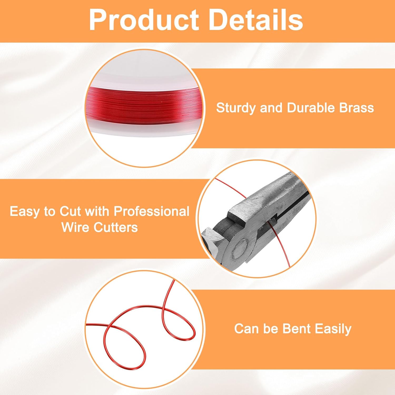 HARFINGTON 82ft Jewelry Wire, 32 Gauge (0.2mm) Brass Craft Soft Metal Tarnish Resistant Copper Beading Wire for Jewelry Making Supplies Crafting, Bright Red