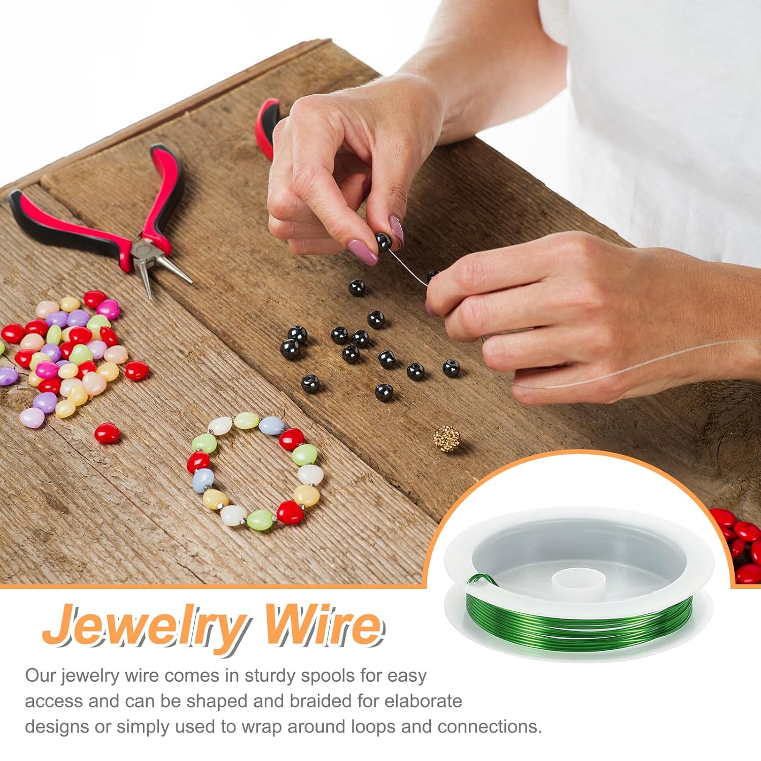 - Features - The jewelry wire is bendable and flexible, easy to use, and can be used with different types of beads, necklaces, bracelets, and other jewelry DIY projects. In addition, it is packaged in a sturdy spool, which is convenient to take out the metal craft wire and keep it neat and not messy.