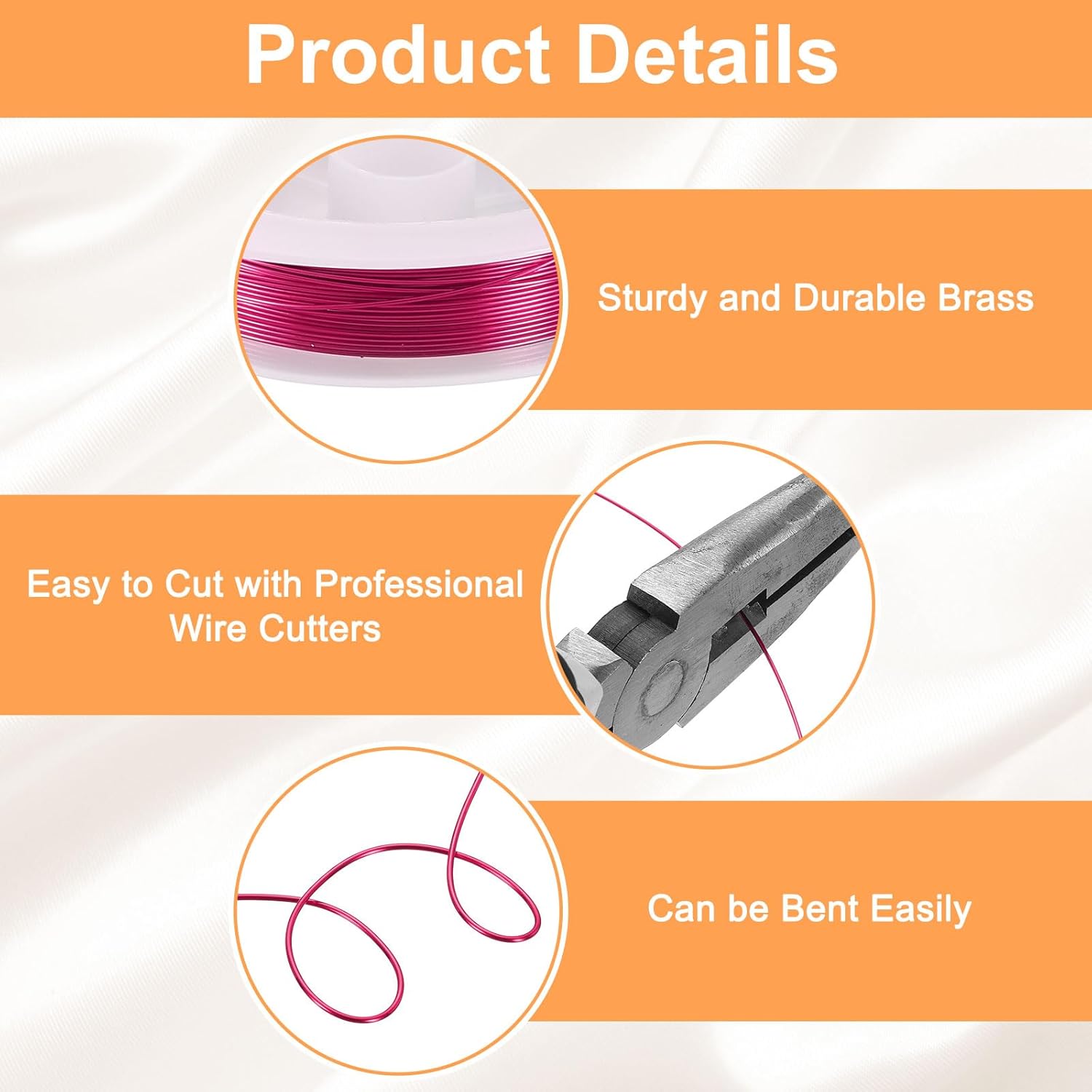 HARFINGTON 20ft Jewelry Wire, 24 Gauge (0.5mm) Brass Craft Soft Metal Tarnish Resistant Copper Beading Wire for Jewelry Making Supplies Crafting, Rose Red