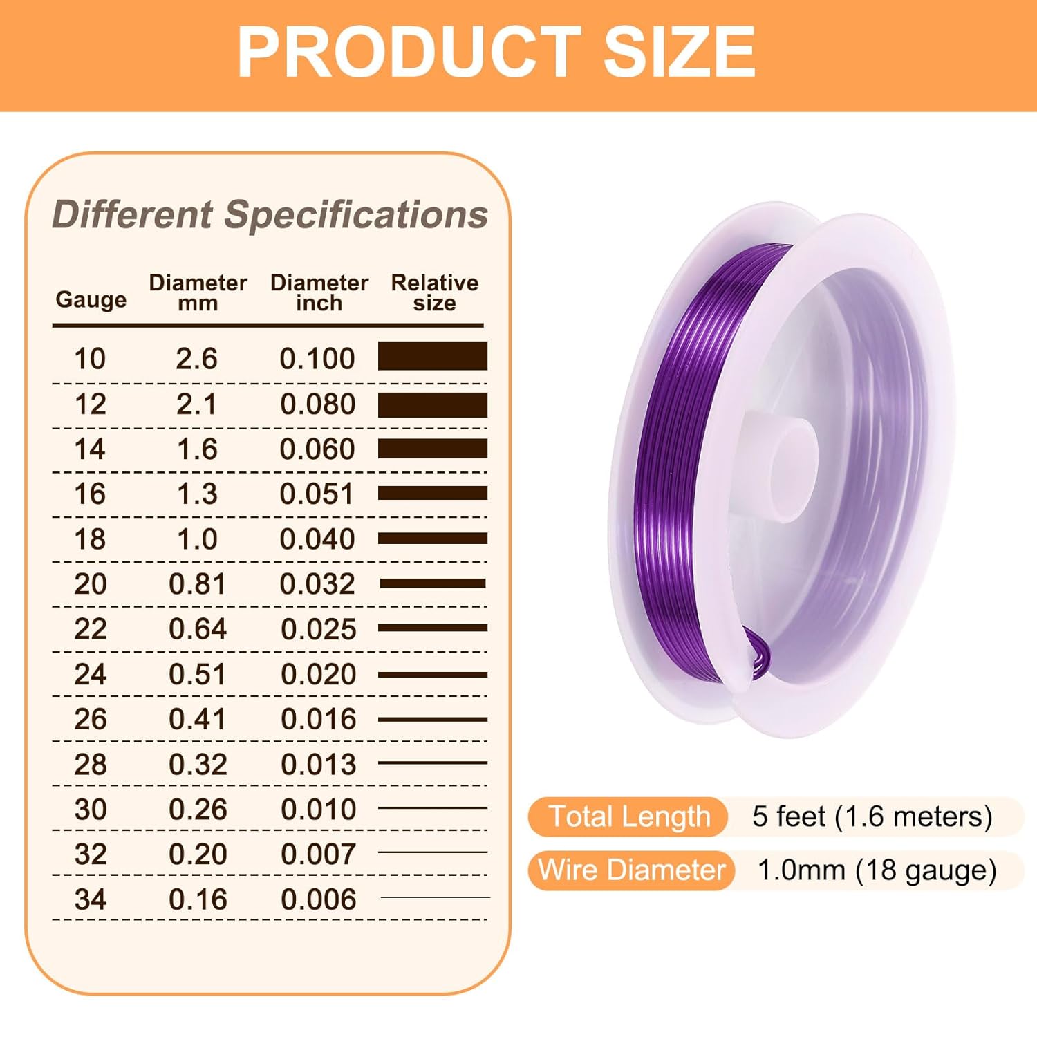 - Size - The diameter of the art wire is about 1.0mm (18 gauge) and 5 feet (1.6 meters) long. The art wire is suitable for jewelry making, beading, and jewelry repair.