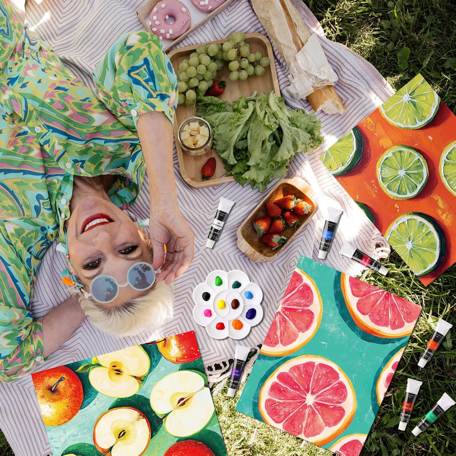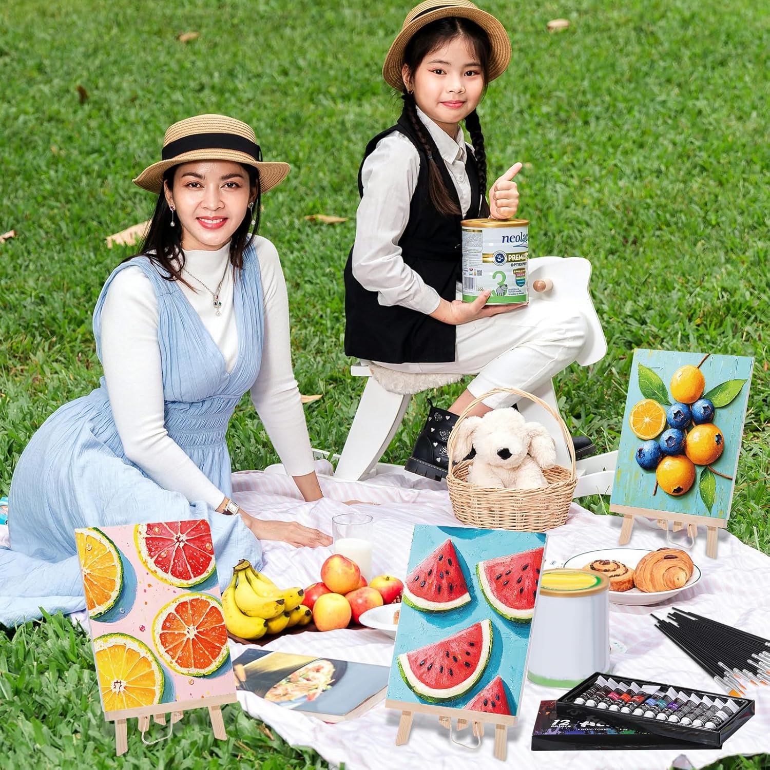 Cholemy 36 Pcs Paint and Sip Kit for Adults 8''x10'' Pre Drawn Canvas for Painting DIY Afro Acrylic Painting Kit Wood Easel Brushes Date Night Bulk for Christmas Party Gifts(Colorful Fruits)