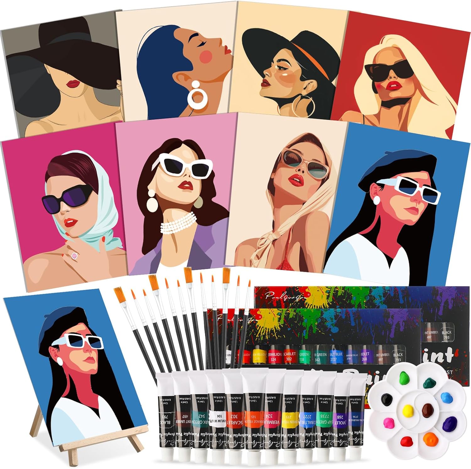 - Distinctive Style and Detailed Design: 12 different pattern pre printed canvas, each pattern is carefully designed, and the stylish characters match the background; Each size is about 8 x 10 inches/ 20 x 25 cm, big sizes and the vivid images will bring you a different painting experience; Our acrylic paint set bring out maximum brilliance and color clarity