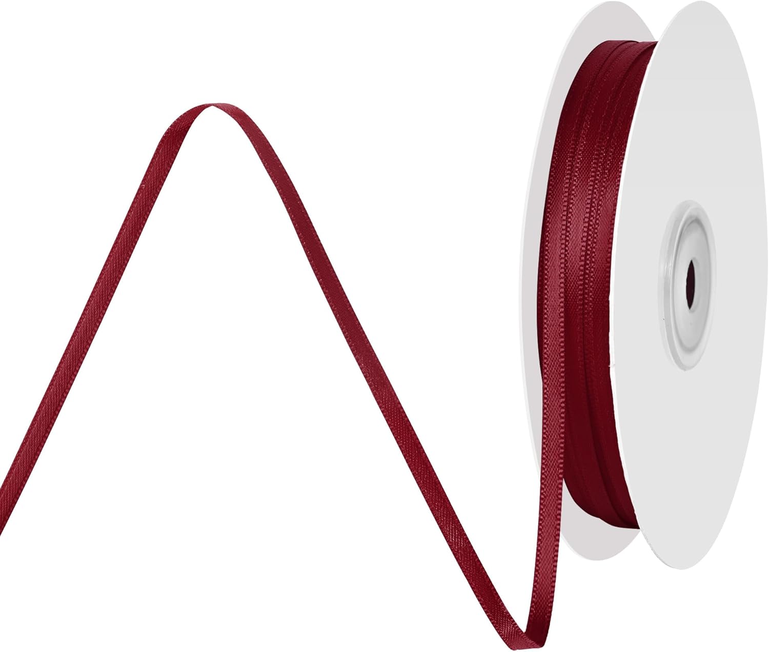 1/8 Inch X 100 Yards Sherry Satin Thin Ribbon Solid Color Double Faced Ribbons Perfect for Crafts Wedding Decor Bow Making Arts Sewing and More