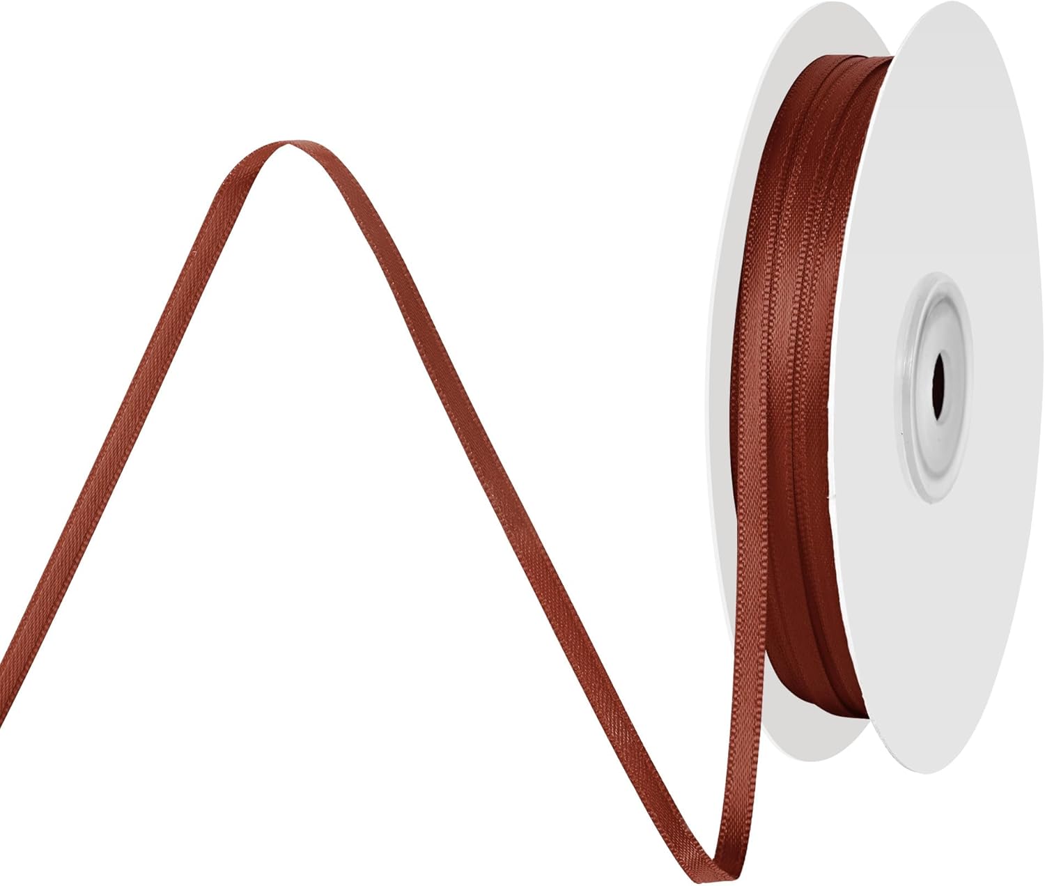 1/8 Inch X 100 Yards Rust Satin Thin Ribbon Solid Color Double Faced Ribbons Perfect for Crafts Wedding Decor Bow Making Arts Sewing and More