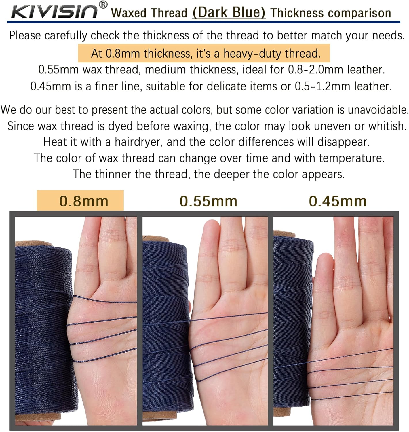 Heavy Duty Round Waxed Thread 0.8mm, 218 Yards, Dark Blue, Bonded Thick Polyester Wax Coated Cord for Leather Sewing, Upholstery, Whipping Twine, Basket Weaving and Macrame Making