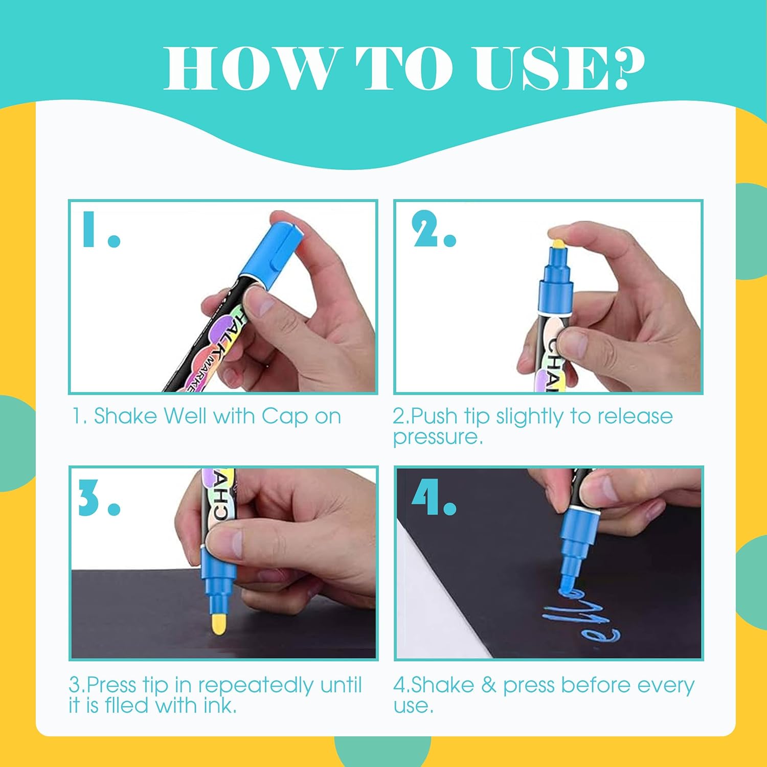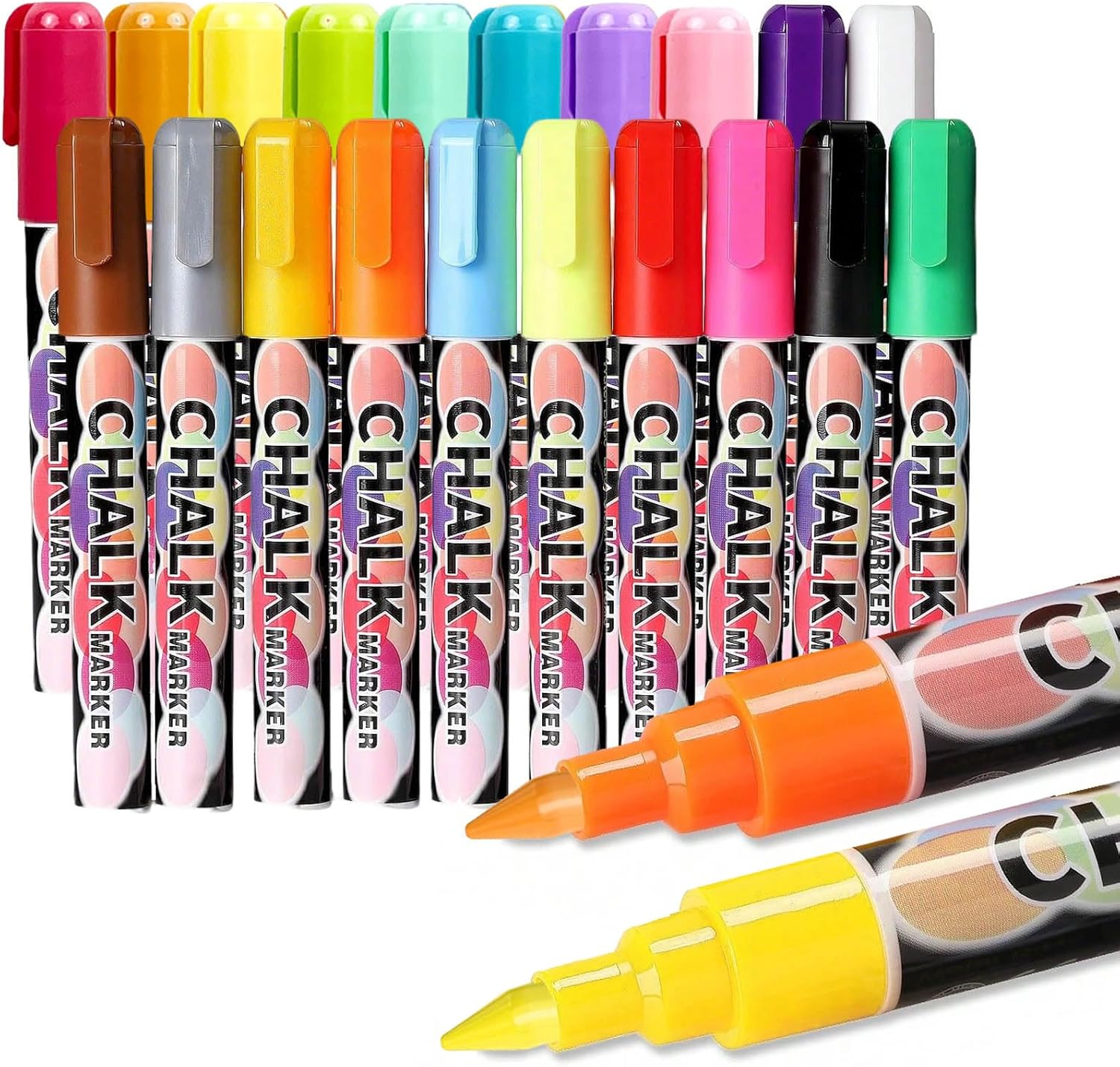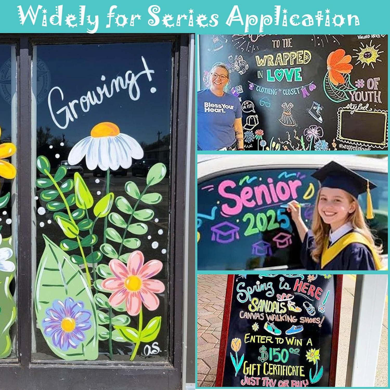 - Versatility Across Surfaces: Make your writing or drawing stand out with Chalk Markers. These brilliant chalkboard markers mark brightly on black boards, light boards, white boards, windows, glass, and more. these jumbo chalk markers prove their versatility on any non-porous surface. Depend on these markers for eye-catching displays or writing in the classroom, your business, or home.Ideal for car decoration, whiteboards, chalkboards, bistro boards, Christmas banners, posters, and various DIY arts and crafts.