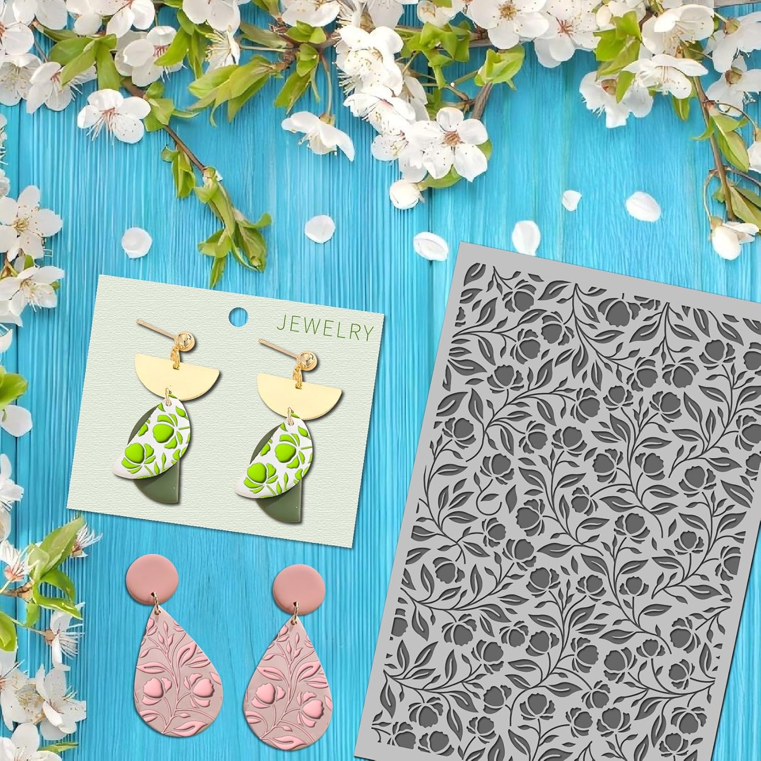 Arbuya Floral Blossom Polymer Clay Texture Mat - Flowers Leaves Leaves Texture Sheet for Polymer Clay Jewelry Making, Earring Charms, DIY Craft Supplies