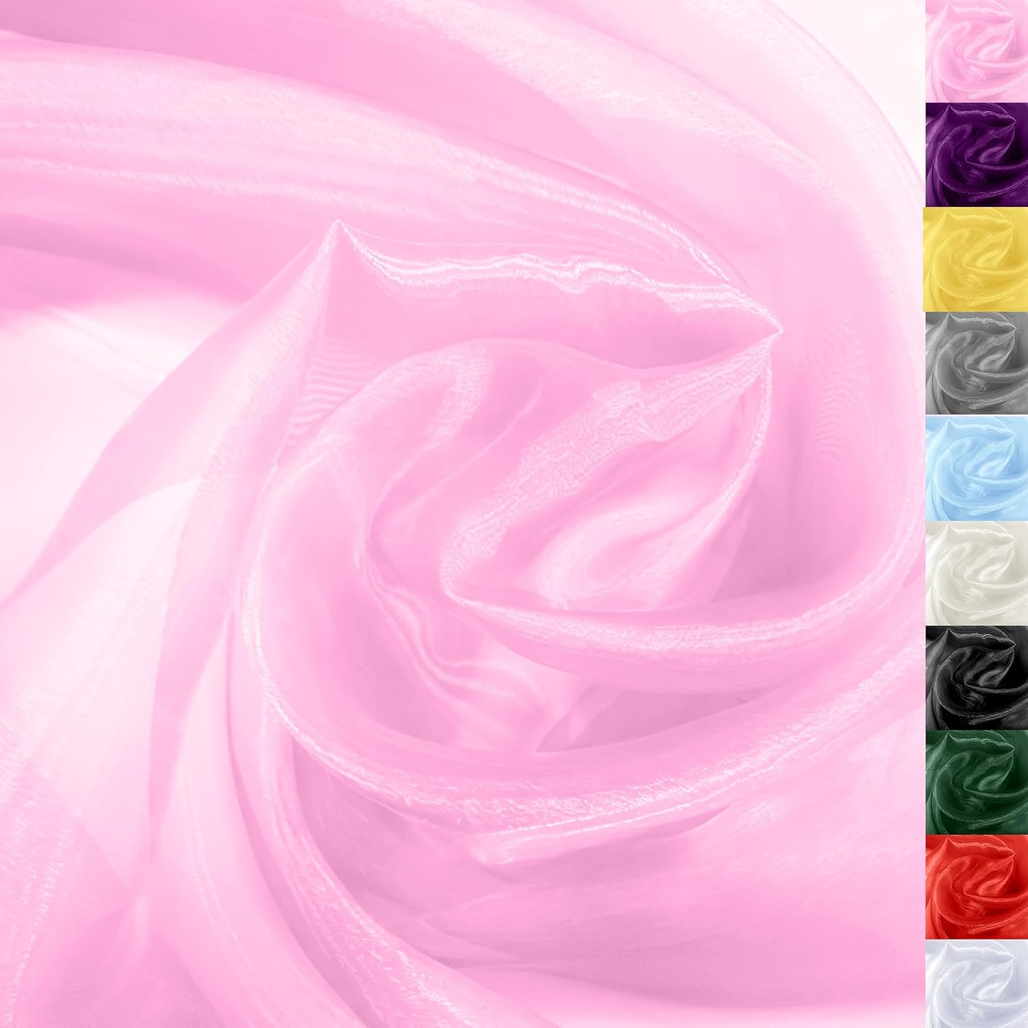 Baby Pink Crystal Organza Fabric – 16" x 5 Yards Lightweight Sheer Tulle for Bows, Tutus, Table Runners, Gift Wrapping, Crafts & DIY Sewing (Folded Package)