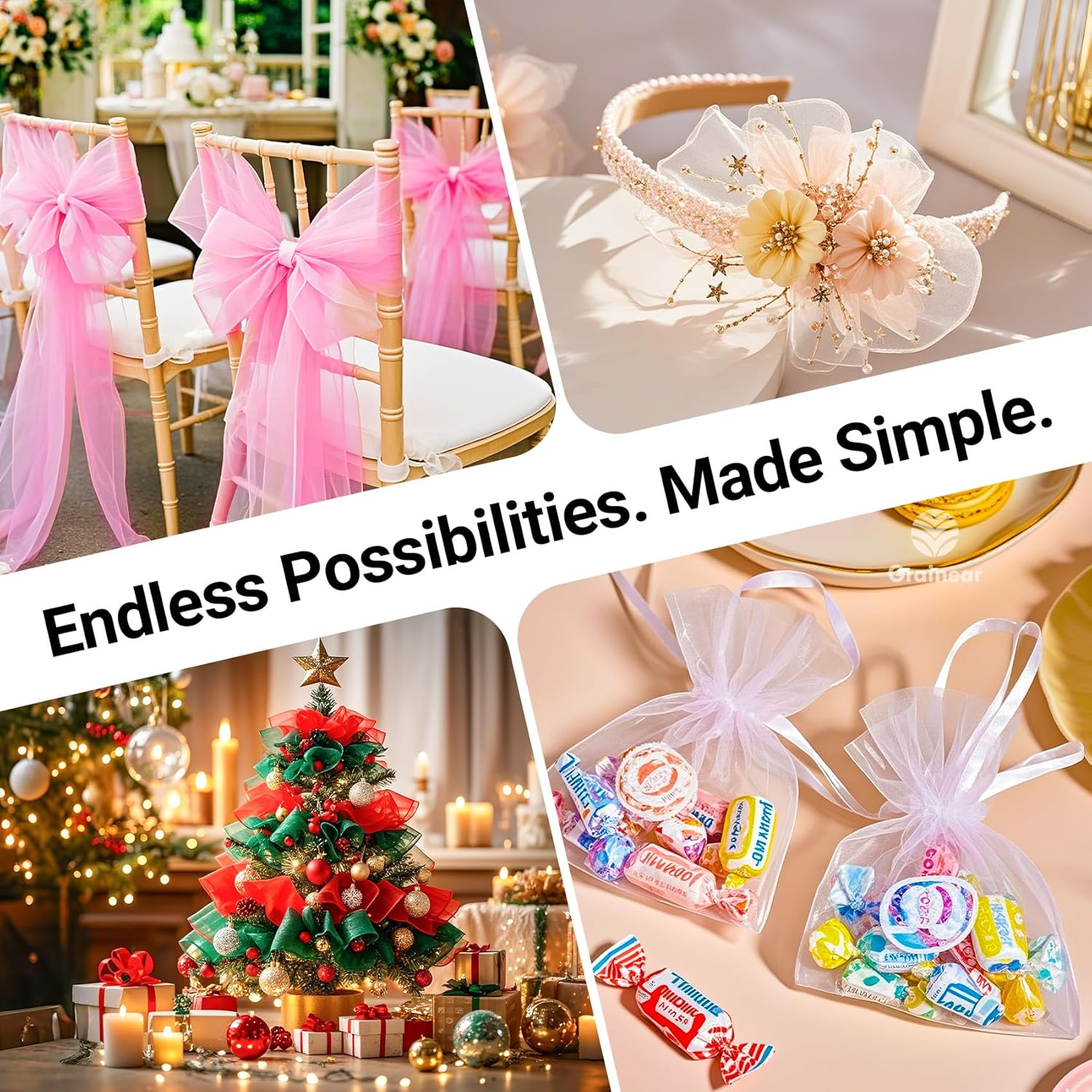 - Elegant & Sheer Finish: Lightweight organza with a subtle shimmer and translucent appearance — adds a refined, elegant touch to any DIY project or event décor