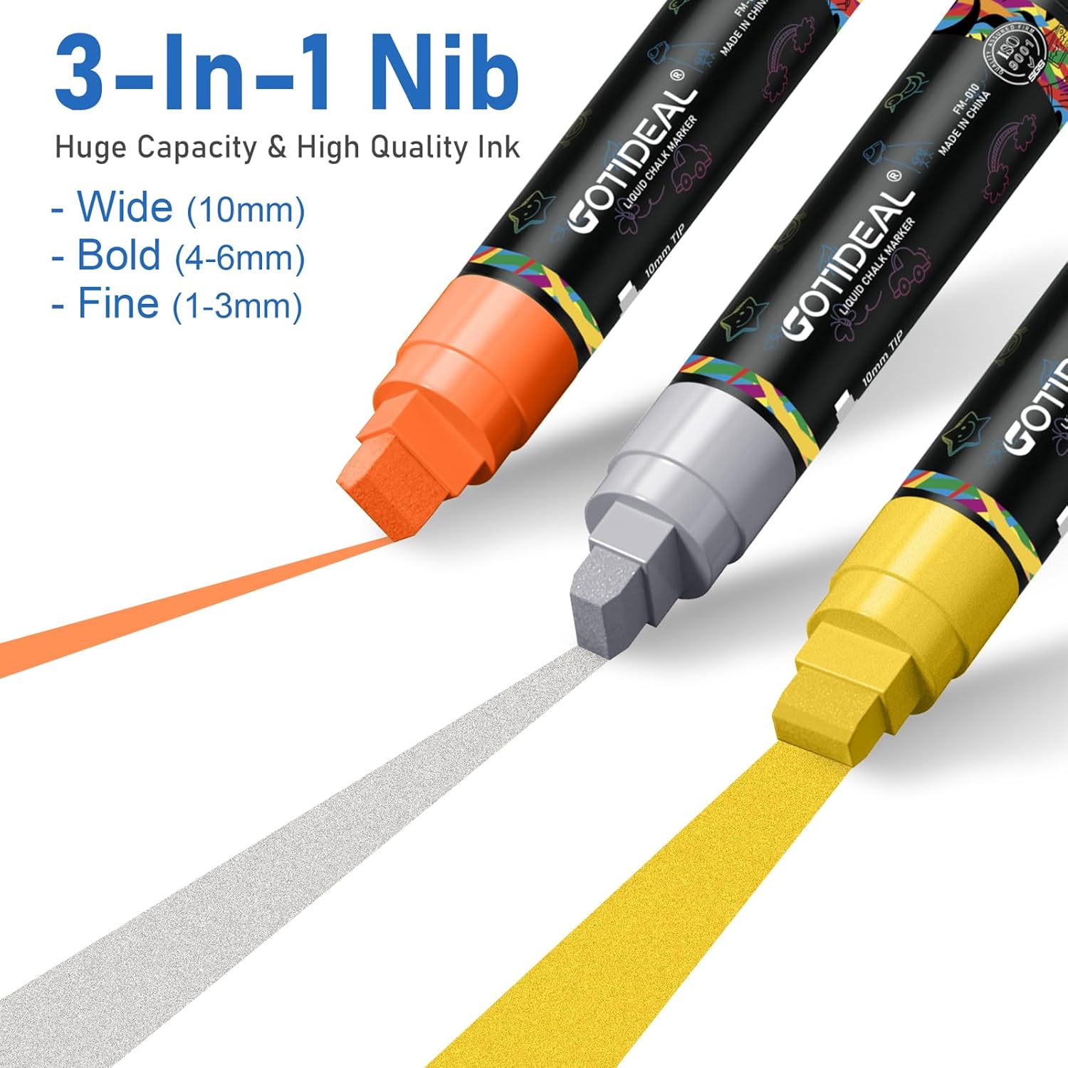 - EASY TO CLEAN - GOTIDEAL liquid chalk pens will keep your design in perfect condition,non-toxic,water-based liquid chalk markers can be erased easily by wiping the area with a damp cloth or paper towel.