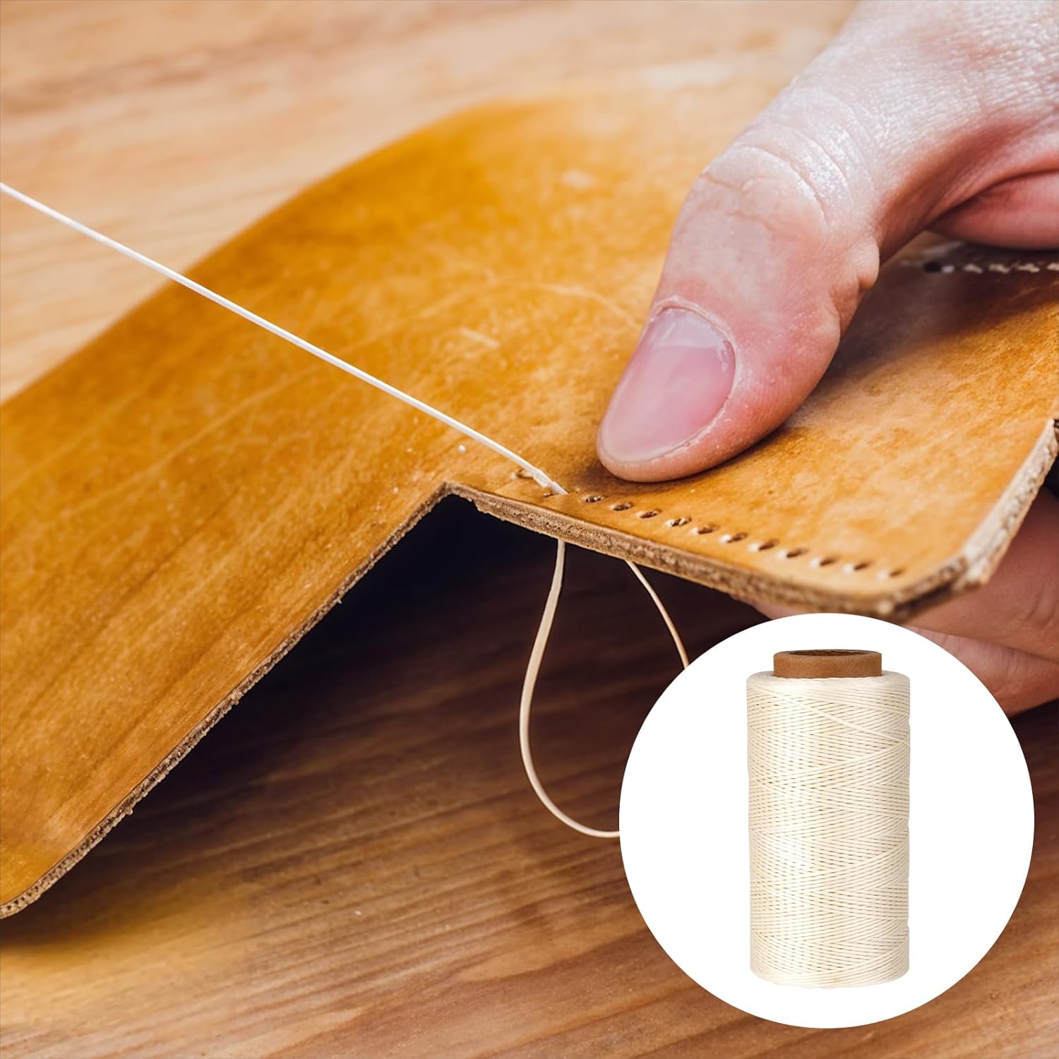 - Sewing Experience: The thread has been waxed, with a moderate wax feel and a pleasant touch. The thread passes through the leather smoothly without lumps or jams. The thread strands remain intact throughout the sewing process