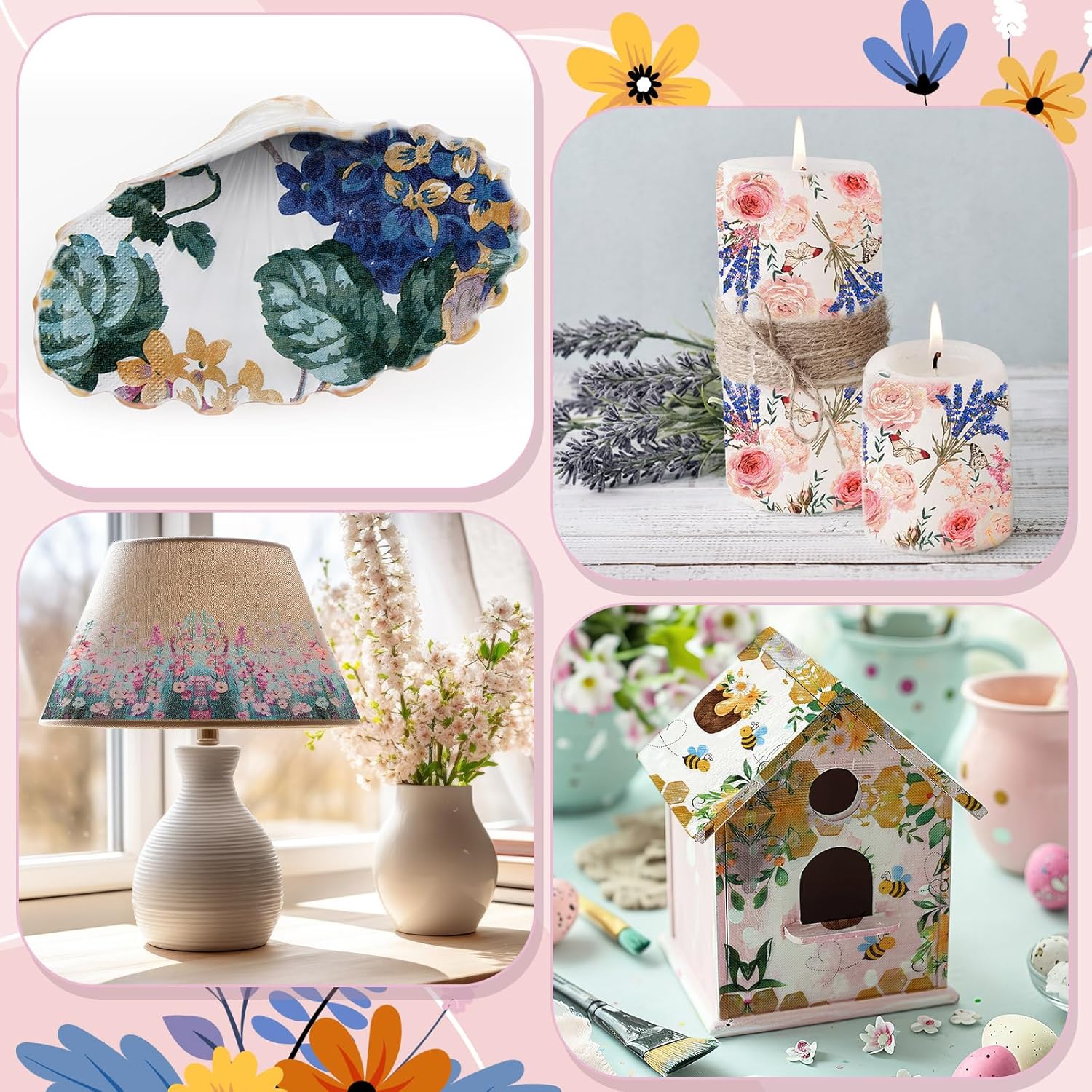 - Detailed Lifelike Prints: adorned with assorted floral patterns, these collage napkins come in a variety of primary tones like yellow, pink, and white; The smooth, realistic prints enhance their exquisiteness and make them ideal for decorating various items