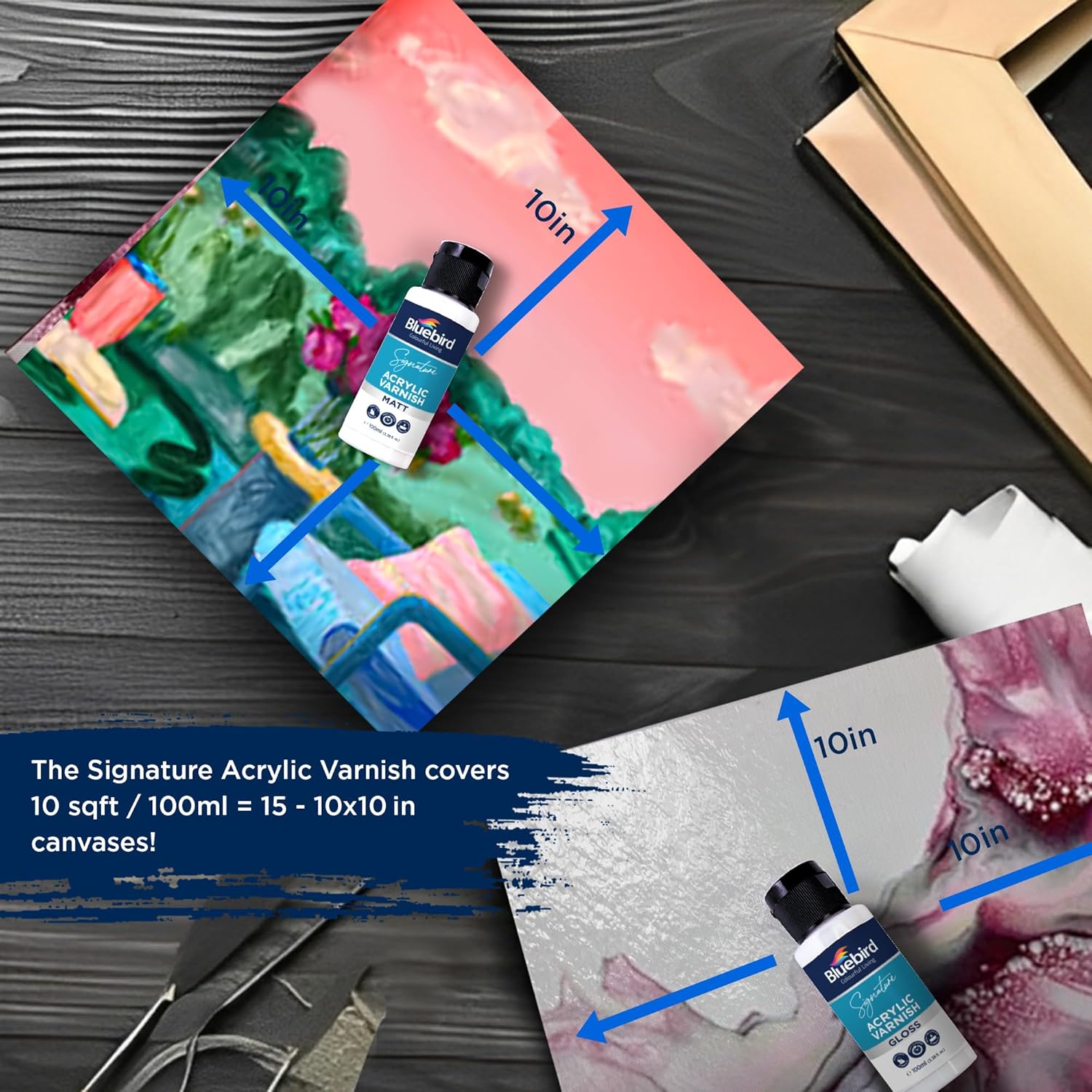 BLUEBIRD Signature Varnish for Acrylic Painting, Matt, 3.4 Fl Oz (100ML), Non-Yellowing, Non-Toxic, Anti-Crazing, Gloss Varnish for Pro Artists, Hobby Painters & Kids