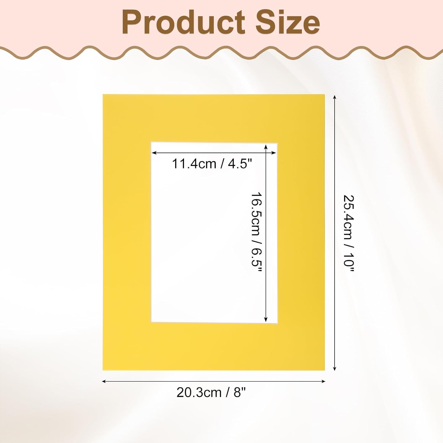 Picture Mats, 8 x 10 for 5 x 7 Pictures Acid Free White Core Bevel Cut Frame Mattes for Display Art Measuring, Yellow