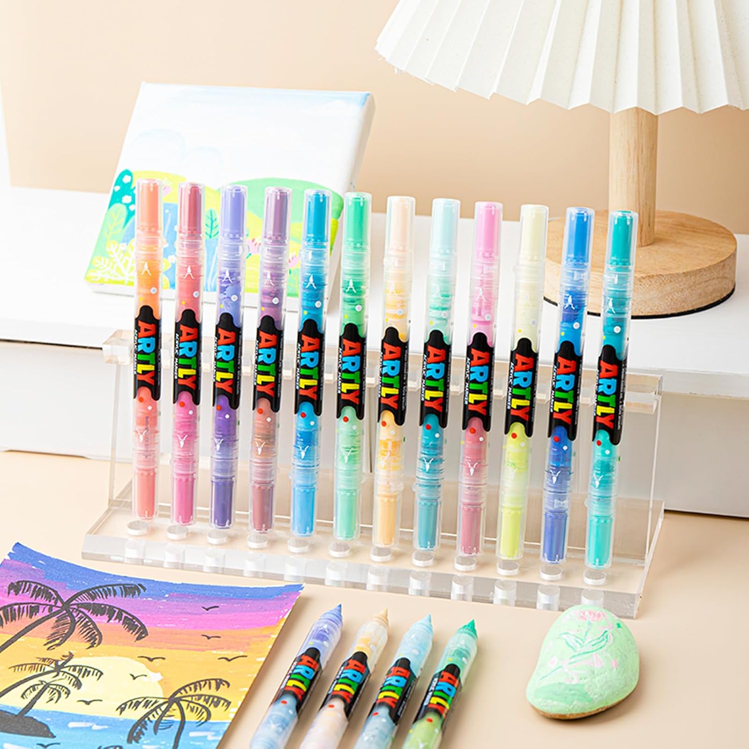 24 Colors Paint Markers, Dual-Color Acrylic Pens with Brush Tips, Double Tipped for Rocks & Art Supplies (12pcs/24colors)