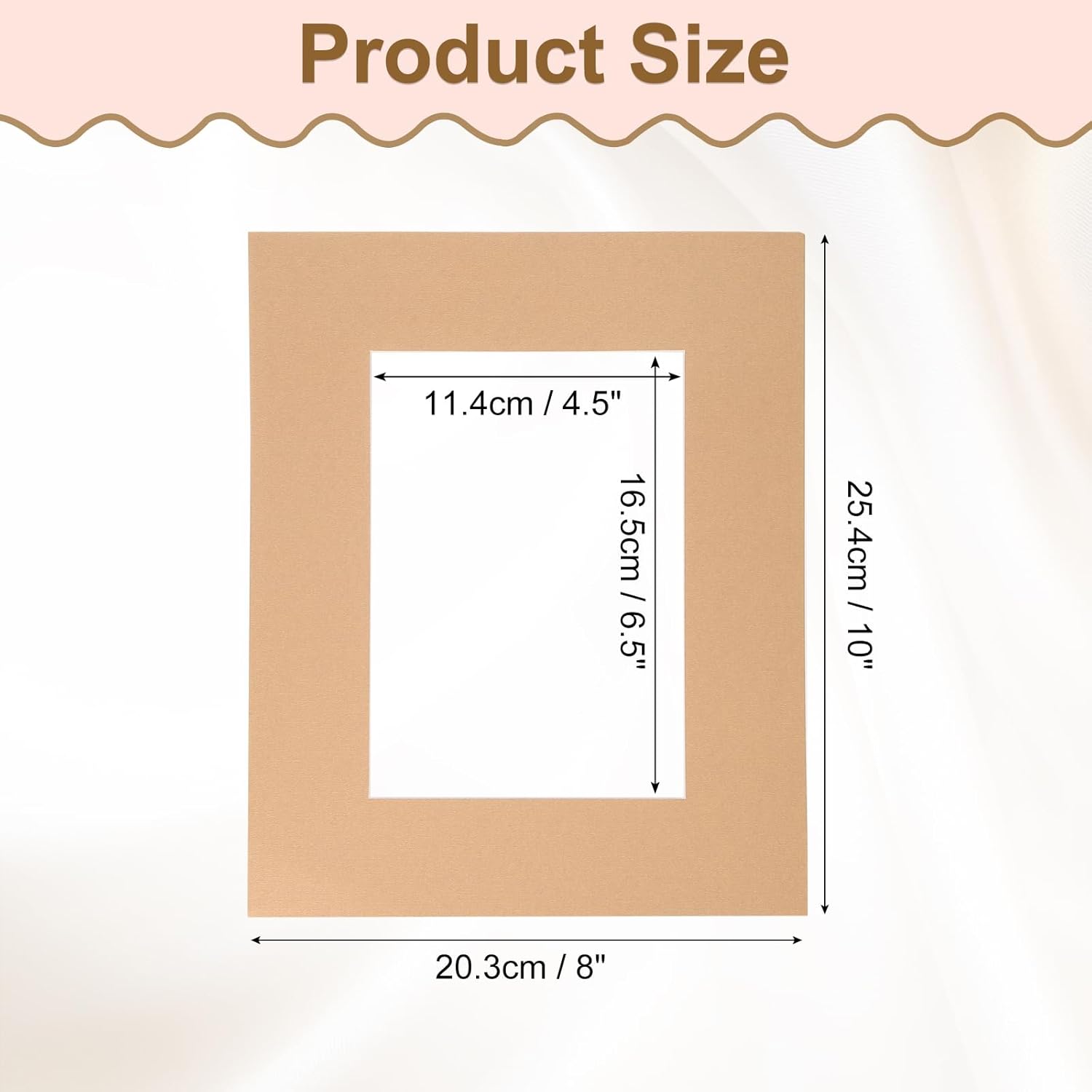 Picture Mats, 8 x 10 for 5 x 7 Pictures Acid Free White Core Bevel Cut Frame Mattes for Display Art Measuring, Kraft Paper Color