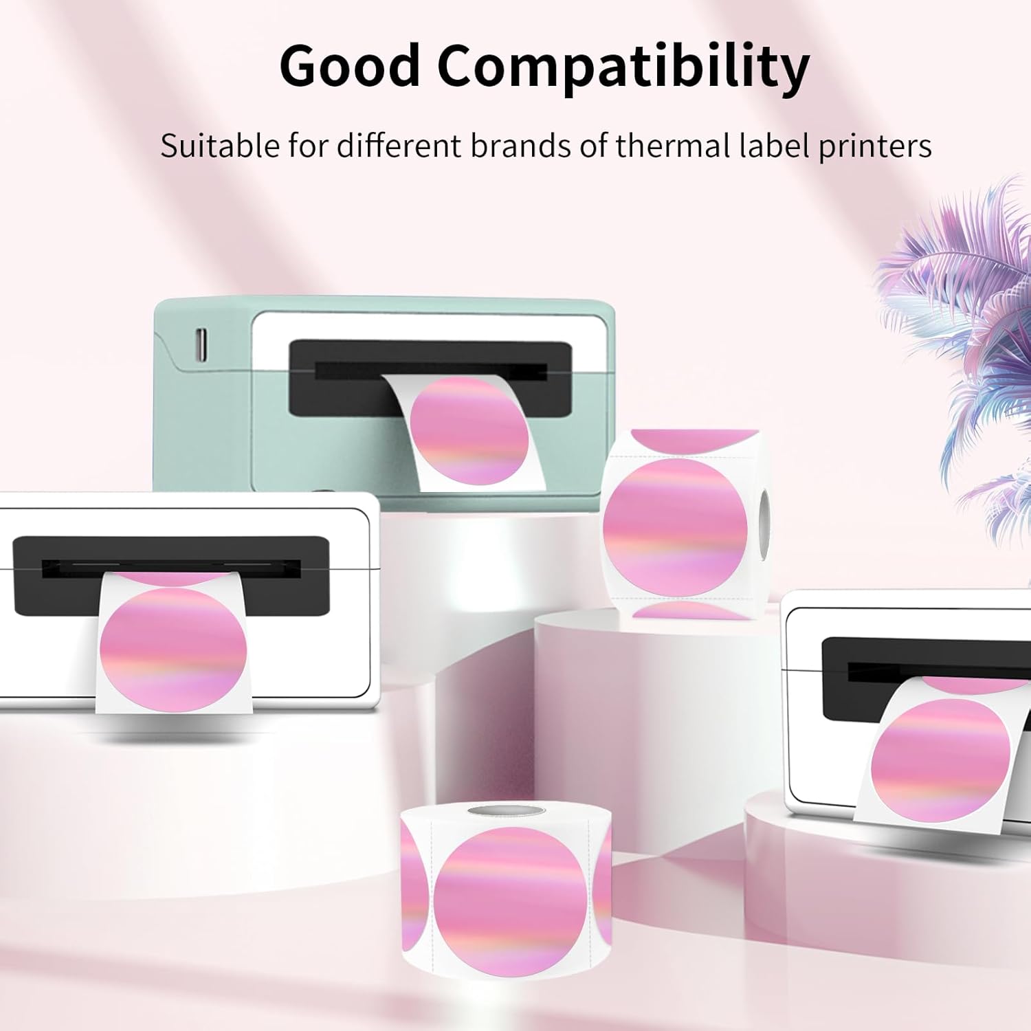 - Package: Holographic Pink Thermal Sticker Labels 2" Round, 300 Labels/Roll. It’s printable with a thermal printer, No ink toner or ribbons are needed