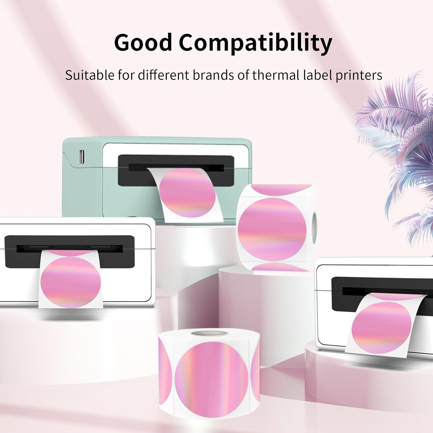 - Package: Holographic Pink Thermal Sticker Labels 3" Round, 200 Labels/Roll. It’s printable with a thermal printer, No ink toner or ribbons are needed
