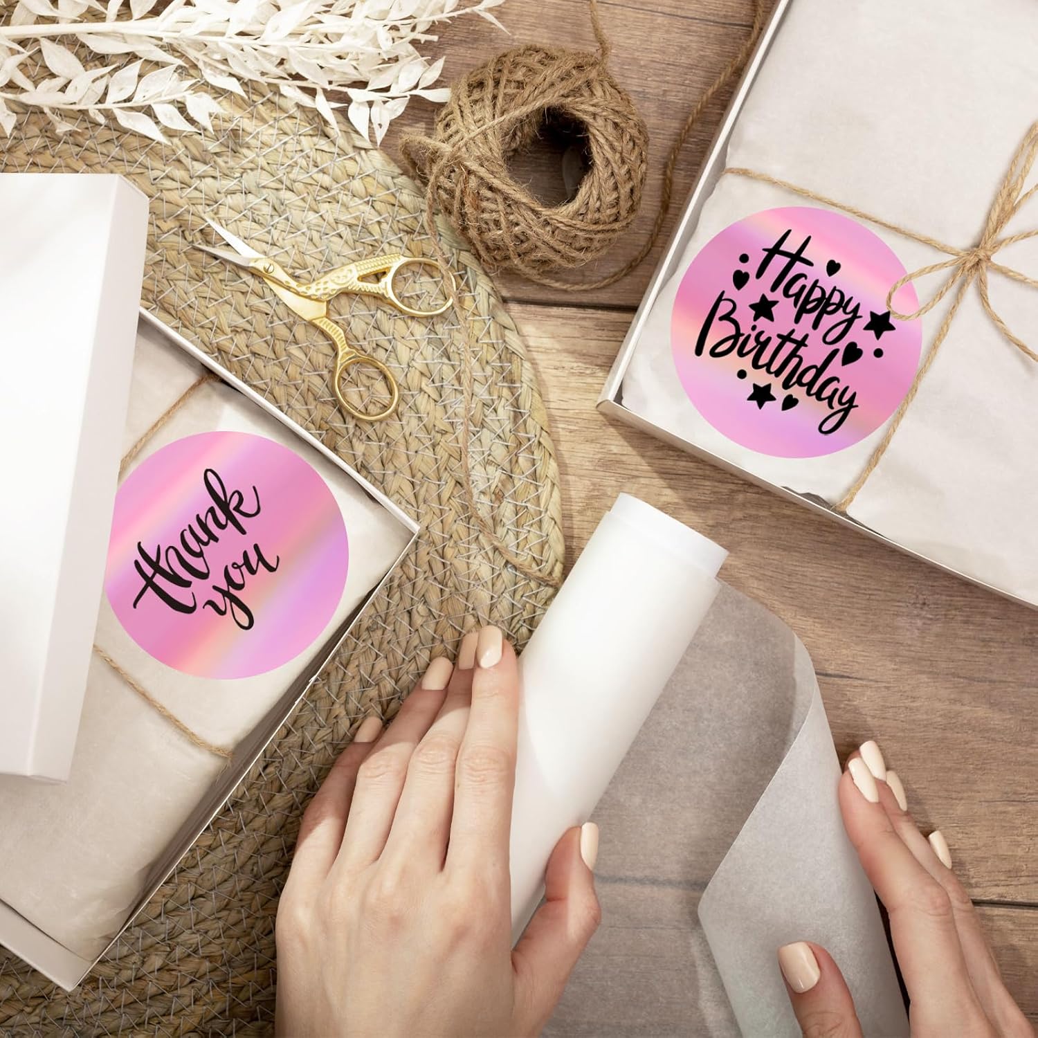 - Holographic Pink Thermal Sticker Labels: Printed on rainbow metallic vinyl, the color of the surface of the sticker can be changed under the light with the move, which is beautiful and charming! Our holographic stickers offer an amazing visual experience like and leave a remarkable impression
