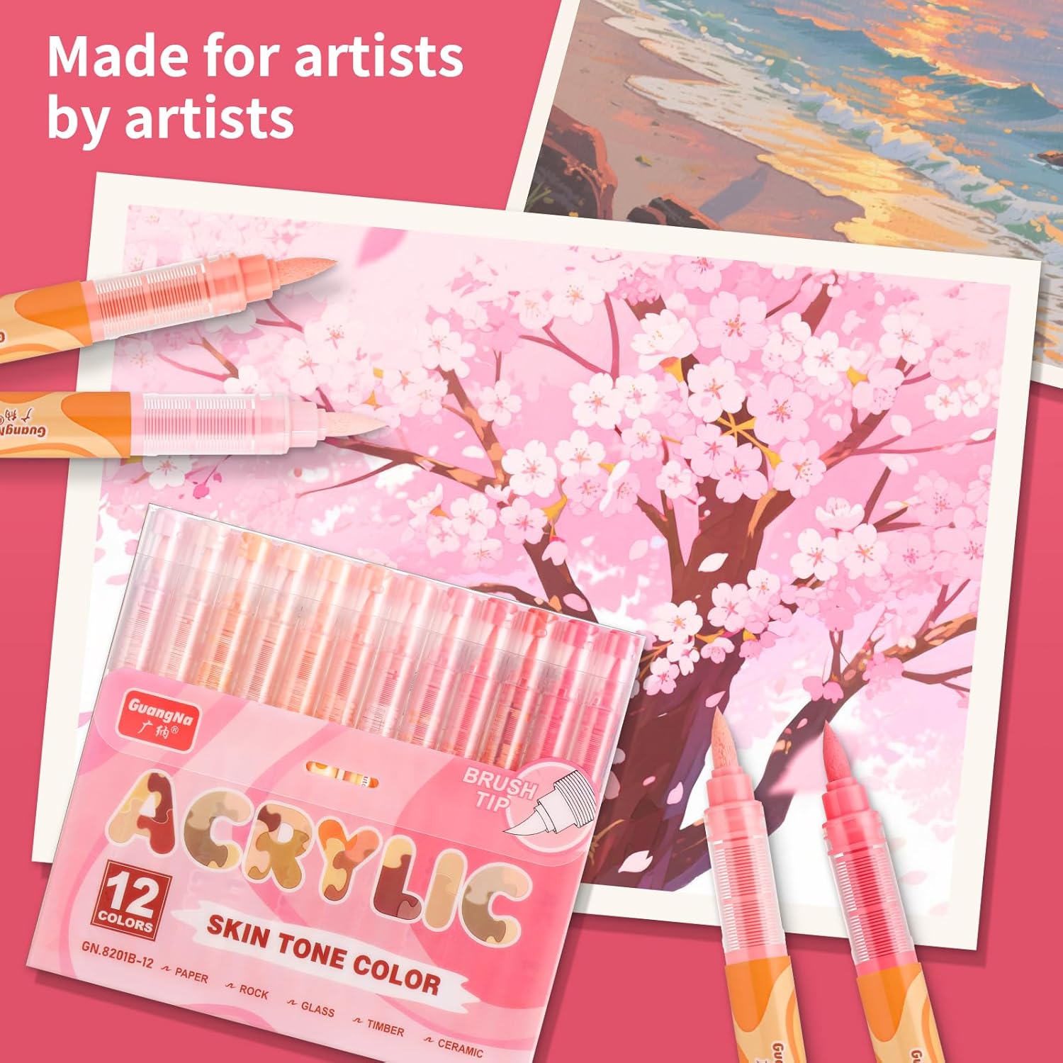 - 【Premium Guangna Acrylic Paint Markers Set-12 Vibrant Colors】:Our Guangna acrylic paint markers set includes 12 richly pigmented, vibrant colors. We offer Sweet Pink, Skin Tone, Macaron, Brown, and Red Brown series to meet all your creative needs from bold designs to subtle gradients.