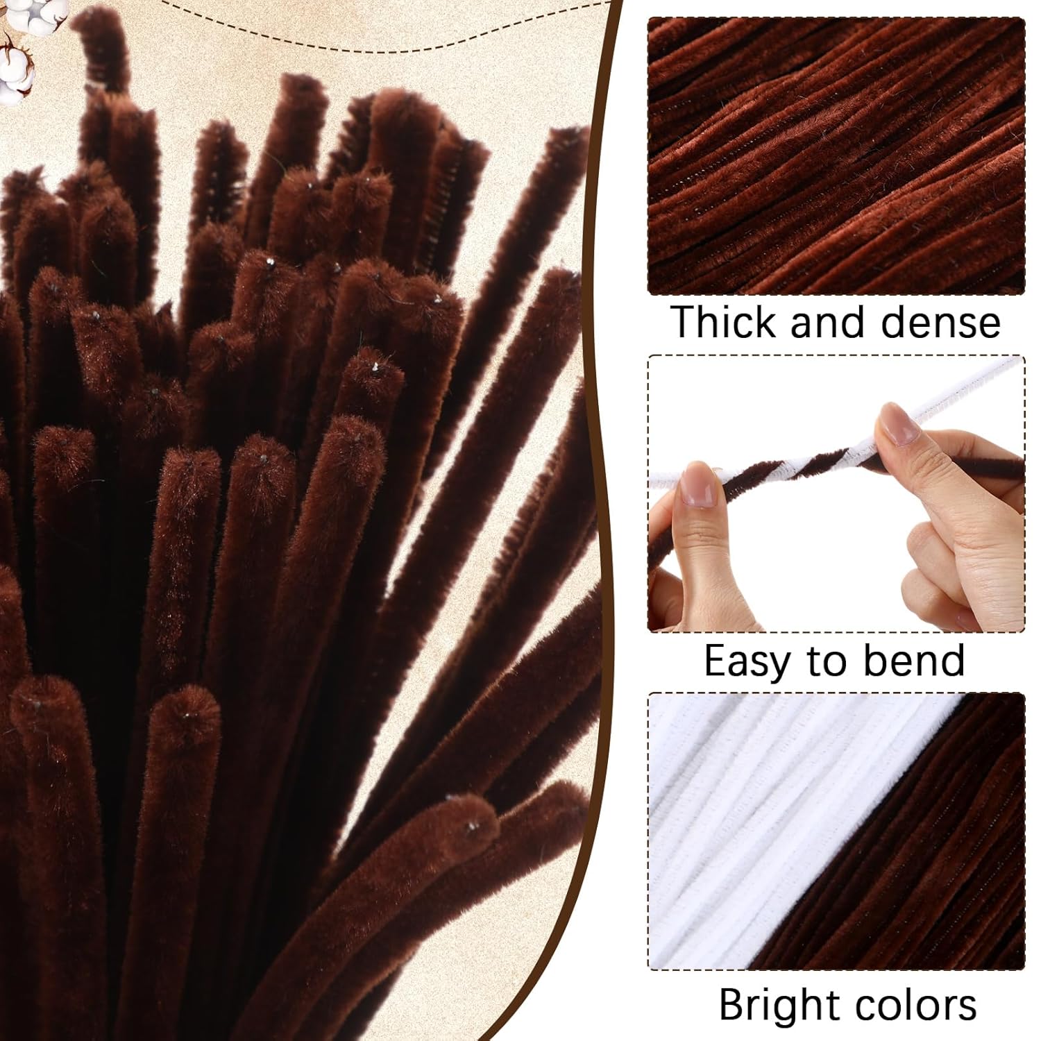 DaisyInner 700 Pcs Halloween Fall Pipe Cleaners Craft Bulk Pastel Chenille Stems Flower DIY Gradient Colored Fluffy for School Classroom Thanksgiving Christmas Party Supplies(White,Brown)