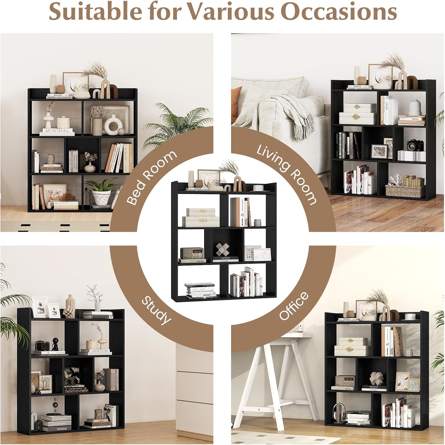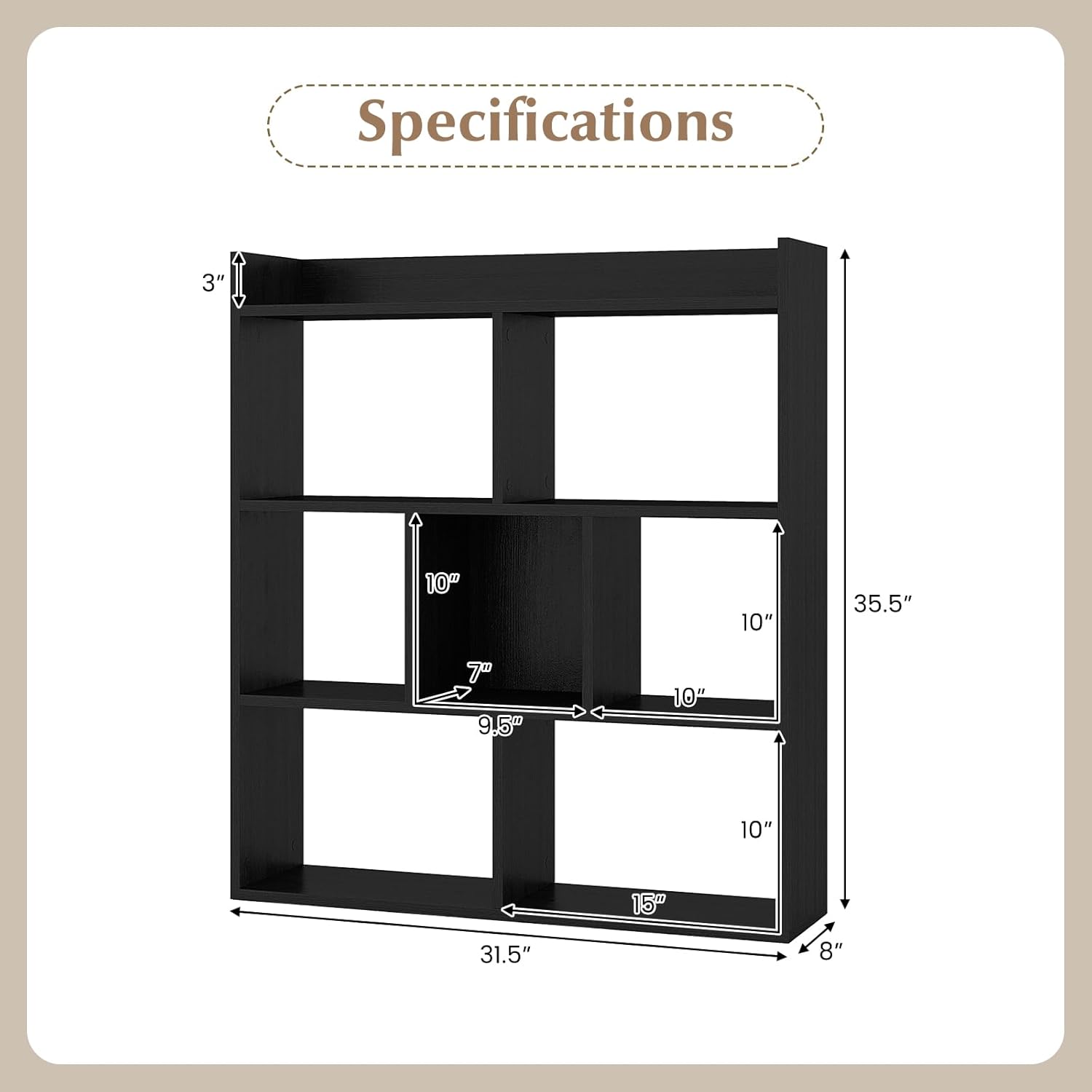 Giantex 7 Cubes Bookshelf, Free-Standing Wooden Bookcase, 4 Tier Home Display Shelf, Horizontal Storage Unit w/Anti-Toppling Devices, Open-Back Display Rack for Study, Living Room (2, Black)