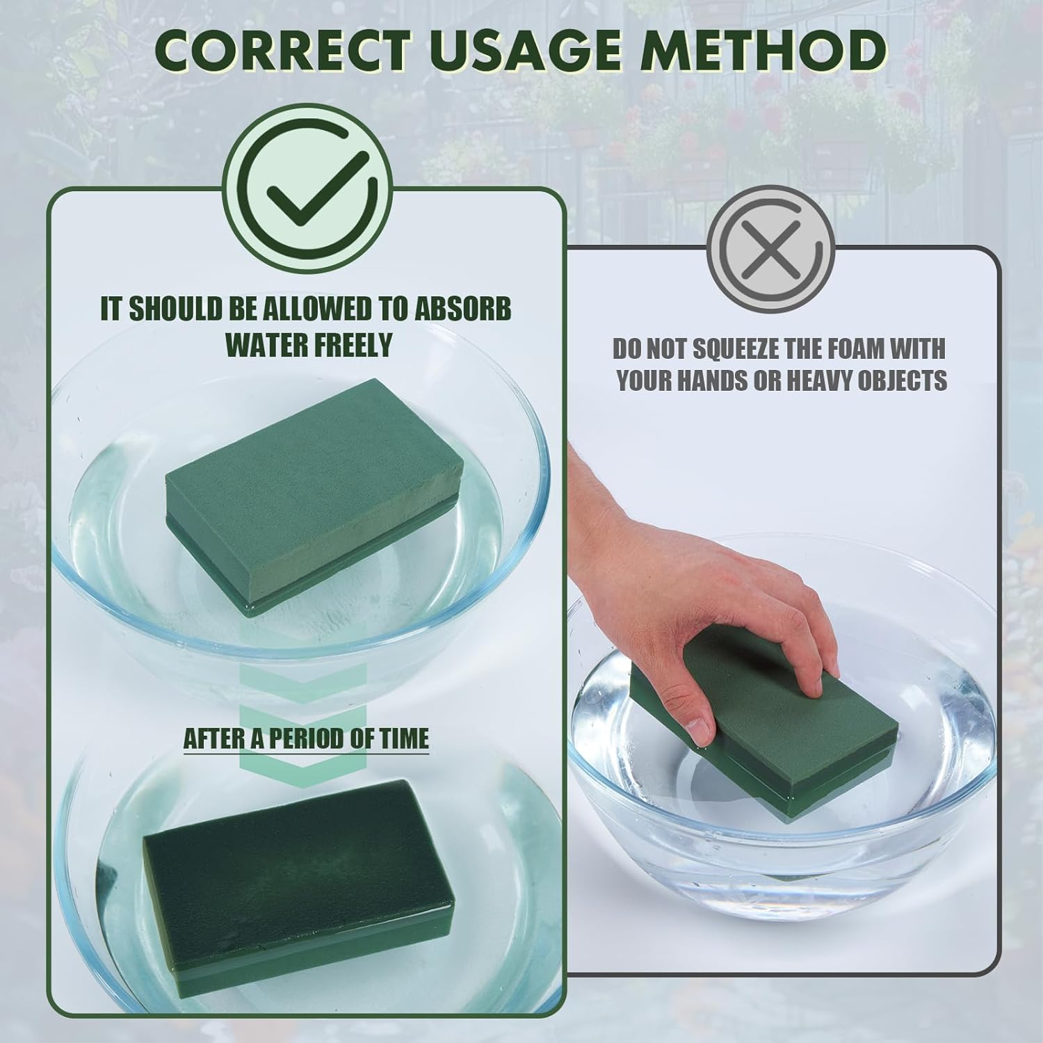- Note: when absorbing water, do not squeeze the foam with your hands or heavy objects, but let it absorb water freely to avoid forming a hole in the center, which cannot provide water for the flowers and keep them fresh