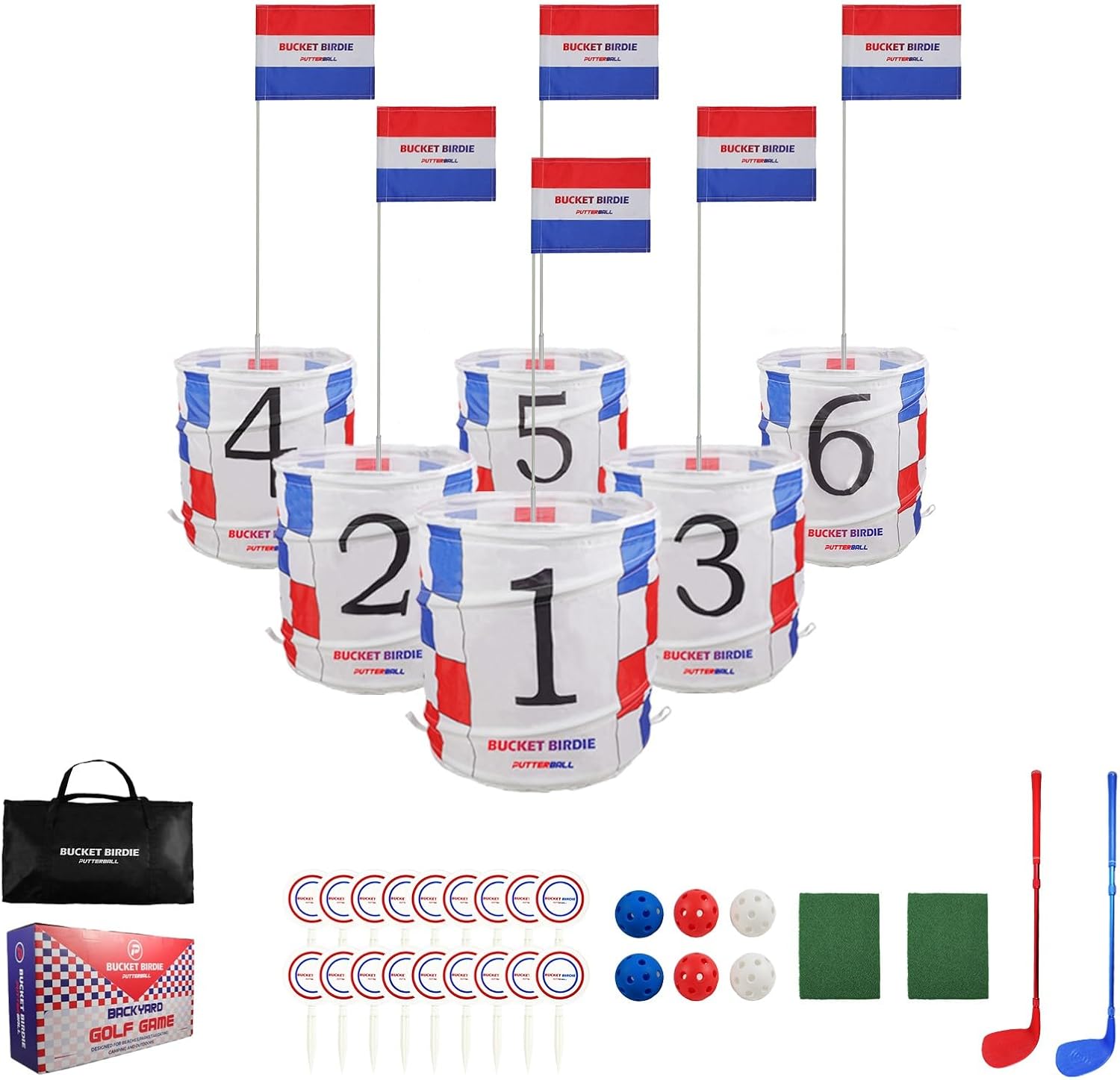 - PORTABLE OUTDOOR BUCKET GOLF GAME FOR ALL AGES: Easy to set up and enjoy anywhere, this Bucket Birdie golf game with flags is perfect for yard game night, beach trips, lawn events, or casual park fun for kids and adults