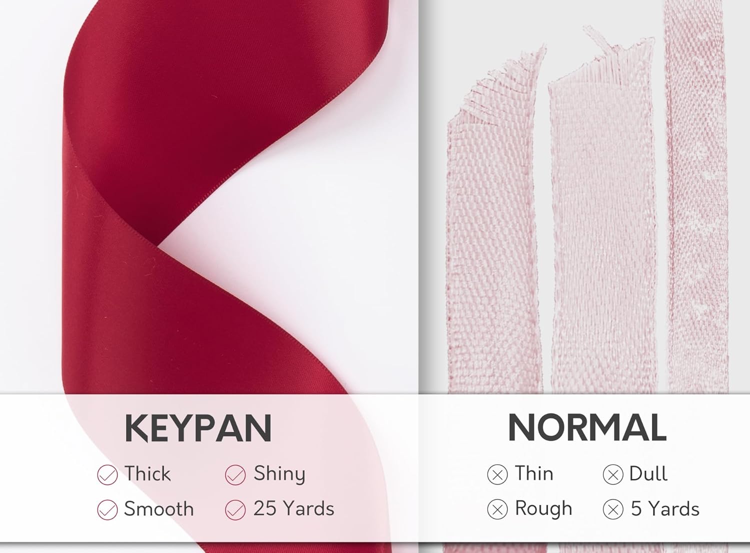 - ELEGANT LUSTROUS SHINE: This satin ribbon has a double-faced backing of high-quality, smooth and shiny polyester satin with a luxurious feel. The ribbon edges are neatly sewn. It is great for adding an elegant touch to your home decor and Christmas tree