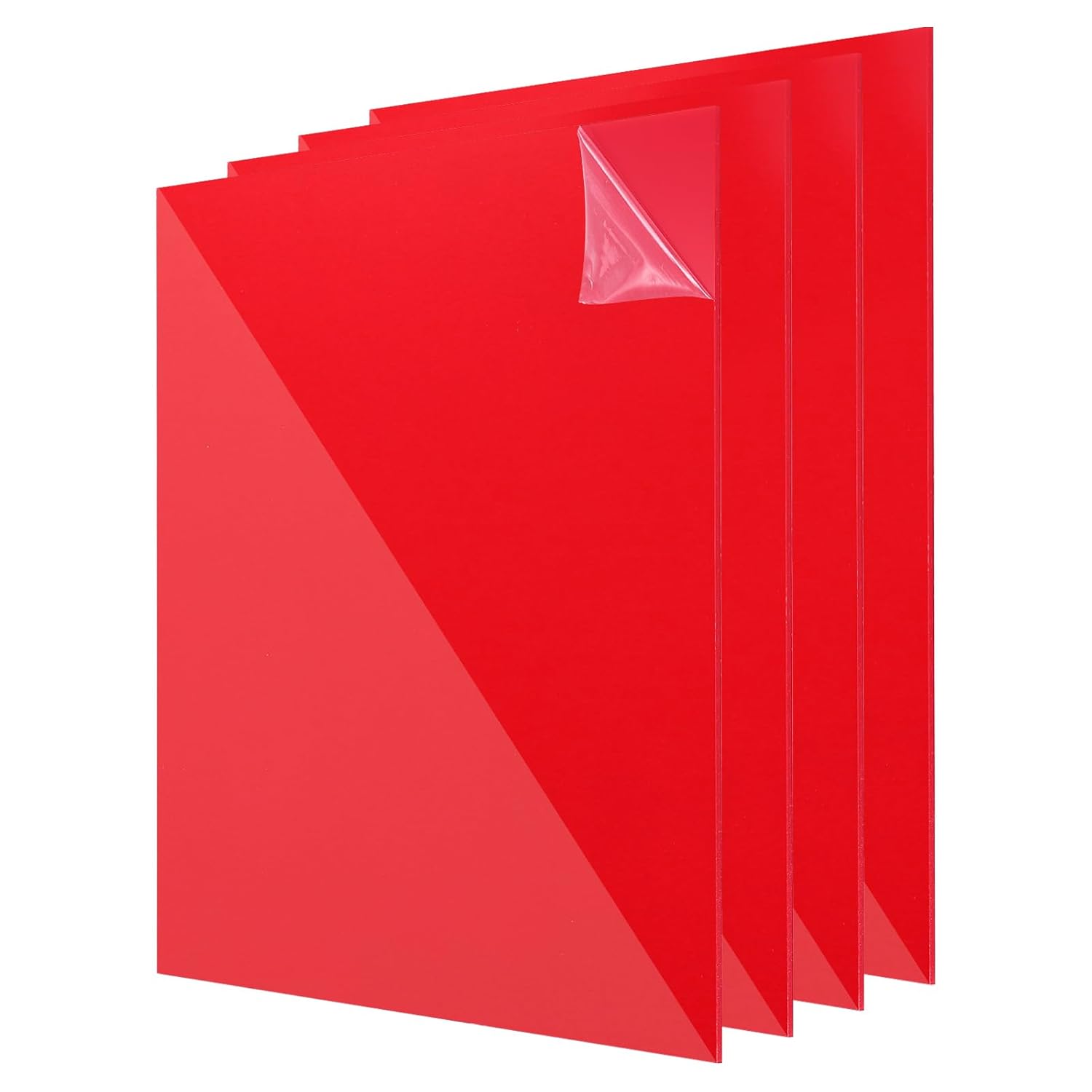 uxcell 4Pcs Acrylic Sheets 12x12 Inch Acrylic Panel 1/8 Inch-3mm Plastic Board for Picture Frames Sign Holders DIY Display Projects Craft, Clear Red