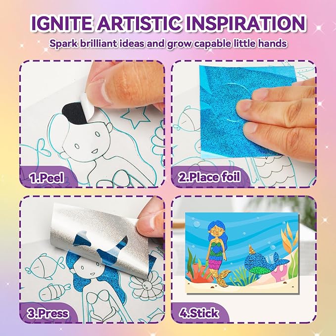 - Magical Mess-Free Foil Craft Art for Kids:Create dazzling princess, fairy and unicorn artwork with zero cleanup! Our innovative no-glue technique lets kids focus purely on creativity without any sticky mess.