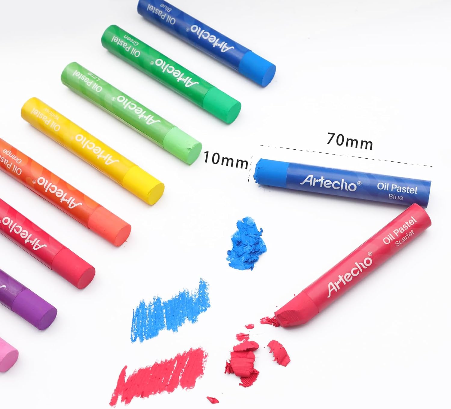- Perfect Packaging: Humanized size design, can be easily put into all kinds of bags. Each oil pastel (70 mm × Ø 10mm) has its own independent paper sleeve, not easy to fall off and break