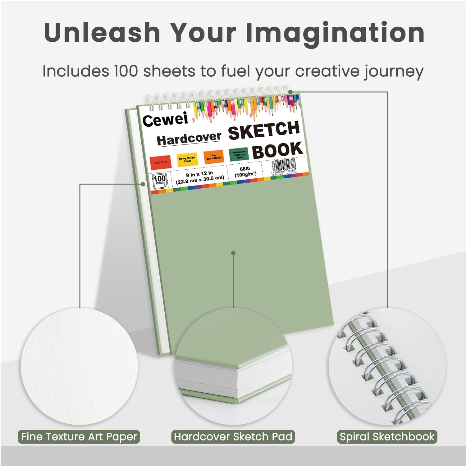 - Premium Paper Quality, 100 Sheets Total:This sketch book for kids ages 8-12 girls comes with a soothing sage green hardcover, evoking a peaceful, nature-inspired vibe. With a spacious 9 x 12 sketch book for girls 10-12 layout and 100 smooth white pages, it’s a calm and focused girls sketch book for home learning or outdoor sketching.