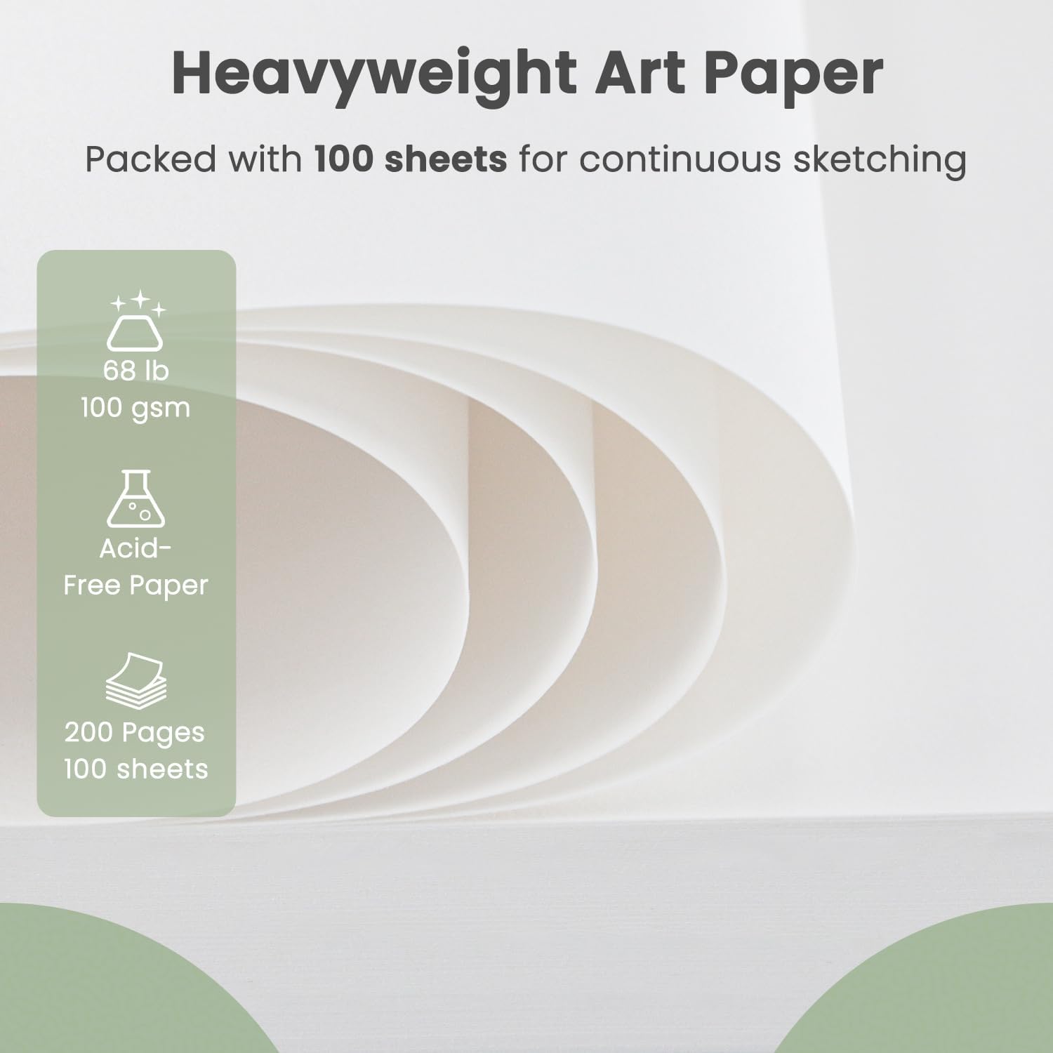 Sketch Pad 9x12 Inch, 1 Pack-100 Sheets Spiral Drawing Paper for Kids,68lb/100gsm Drawing Sketchbook for Kids Ages 8-12, Drawing Book for Adults, Teens, Painting, Drawing & Art Supplies.