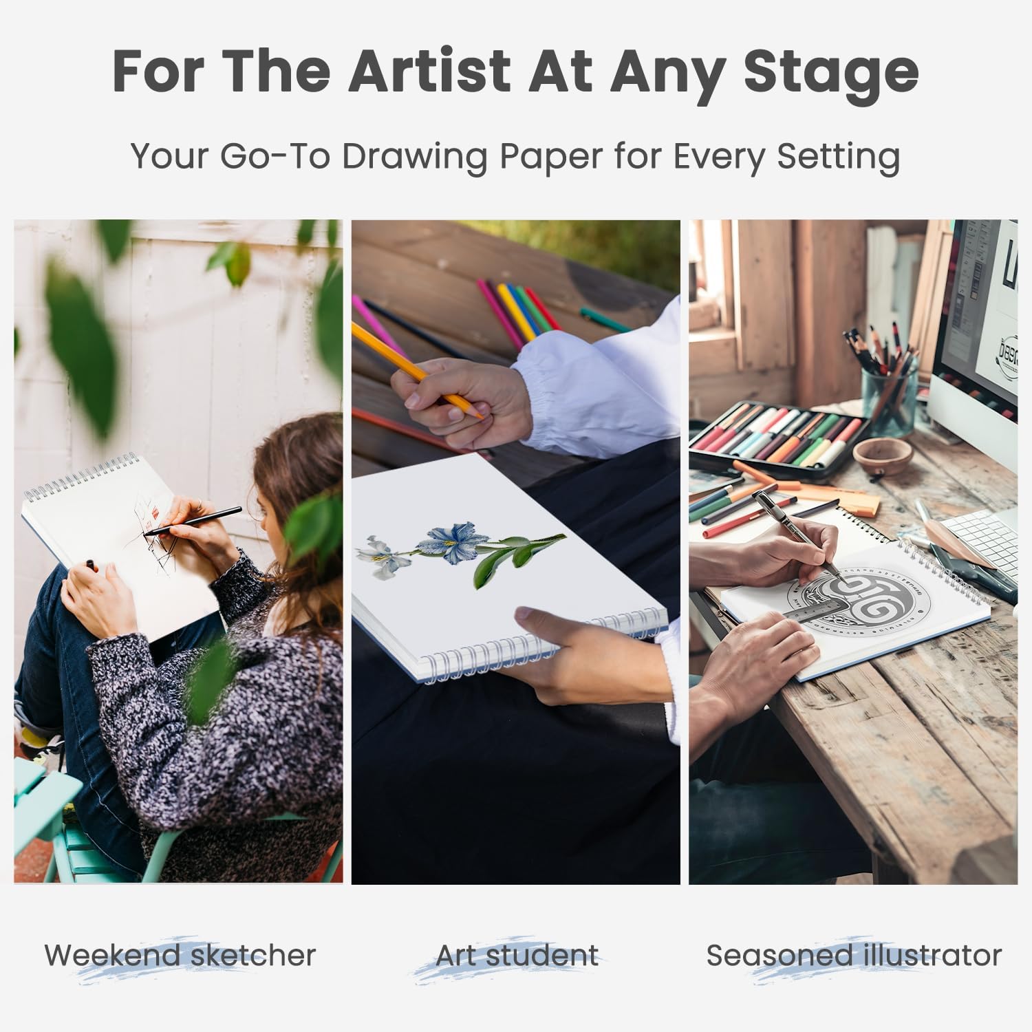 - Thicker 68lb / 100gsm Acid-Free Paper:Made with acid-free paper, this 9x12 spiral sketchbook for drawing for kids resists yellowing and smudging. The 9 x 12 sketchbook for girls 10-12 offers stronger pages than most pads, ideal for erasing and layering. A great sketchbook for girls 8-12, it also suits any sketchbook for adults or a go-to 9x12 sketchbook for women. This girls sketchbook supports confident sketching