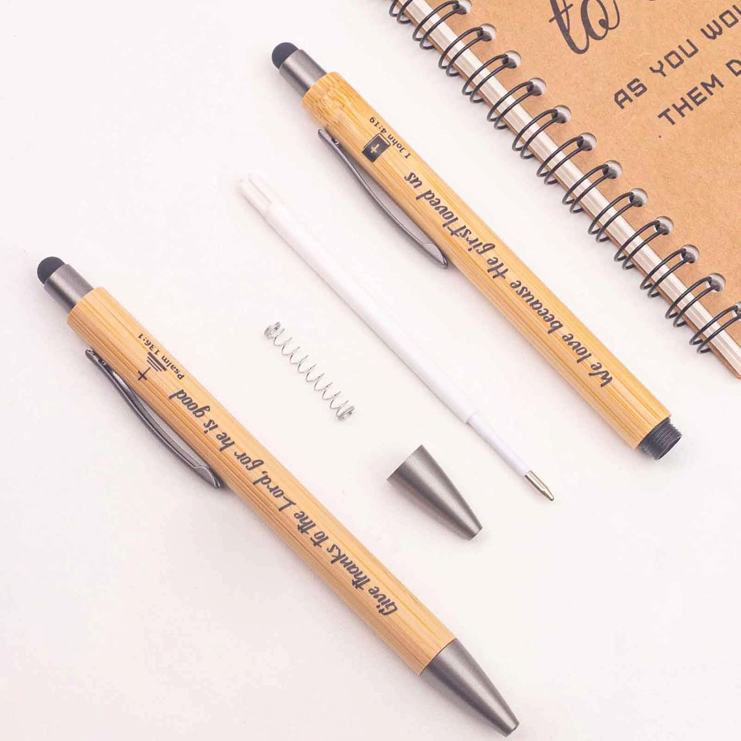 10 Pcs Christian Inspirational Stylus Bamboo Ballpoint Pens Set Bible Pens Bulk Christian Pens Gifts for Church Women Men Sunday Party Teacher Christians Supplies