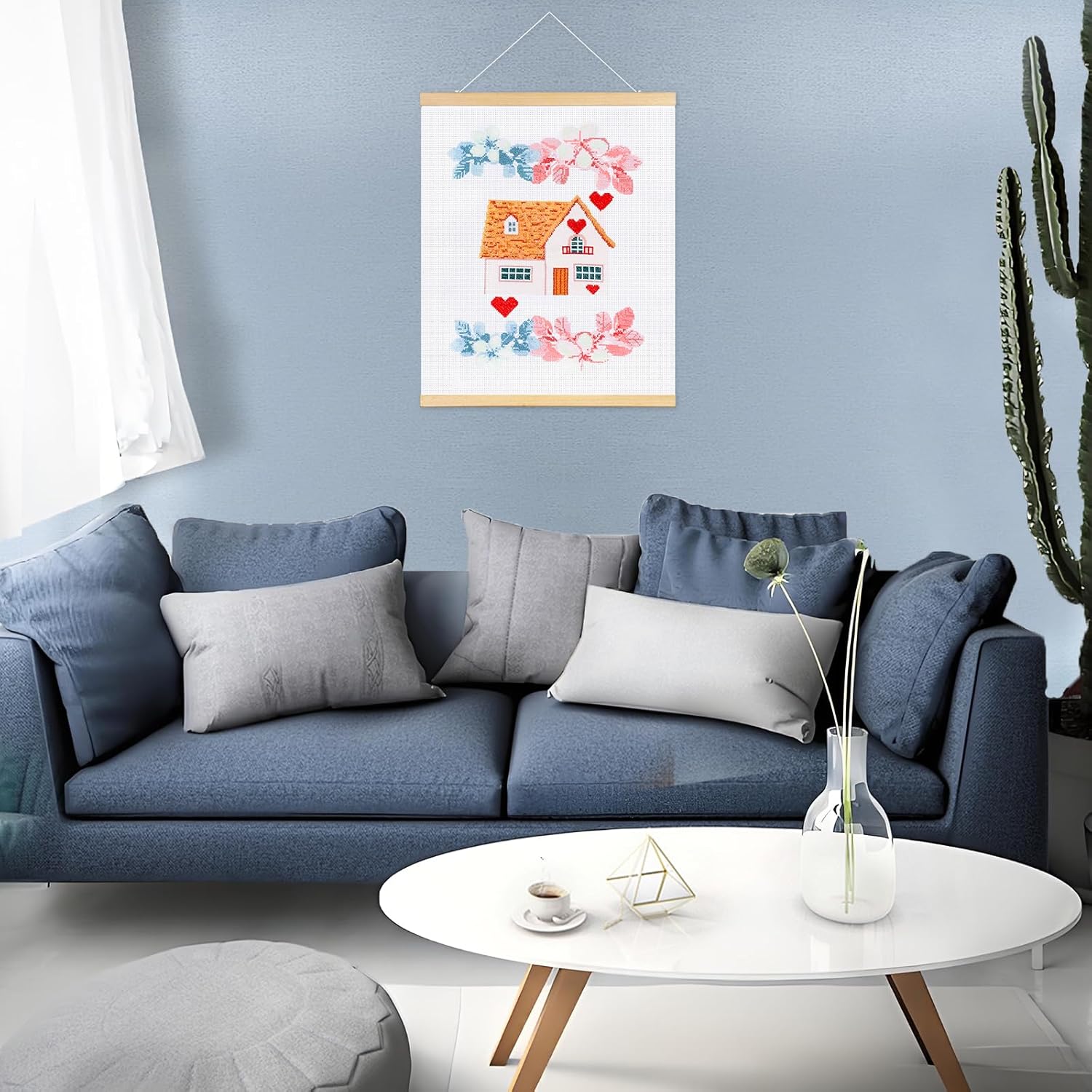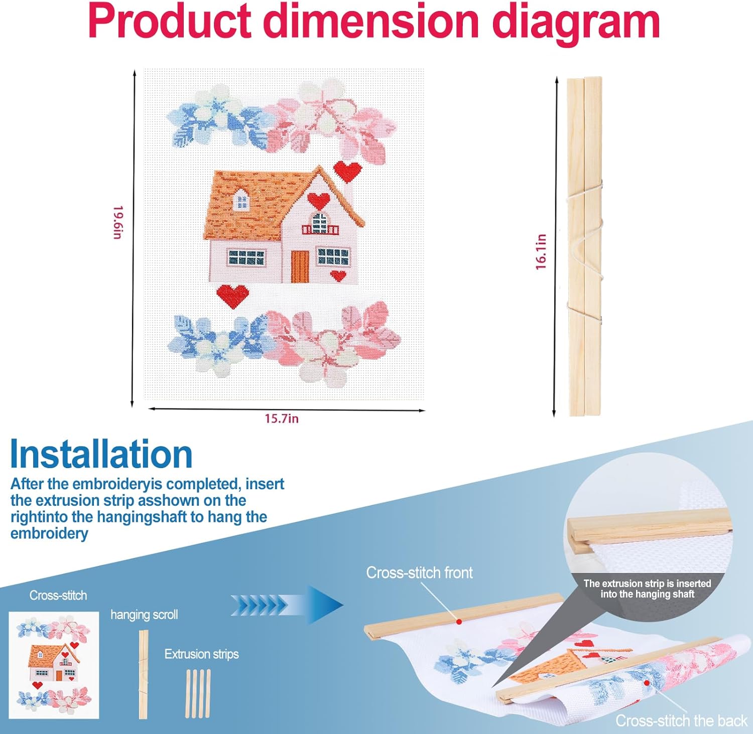 - 【Product Introduction】Cross stitch kits Includes one embroidered piece of 11CT medium grid cotton fabric,a pair of hanging scrolls, a set of embroidery threads, as well as the small tools needed for embroidery, and a simple and easy to understand manual, do not require additional purchase.