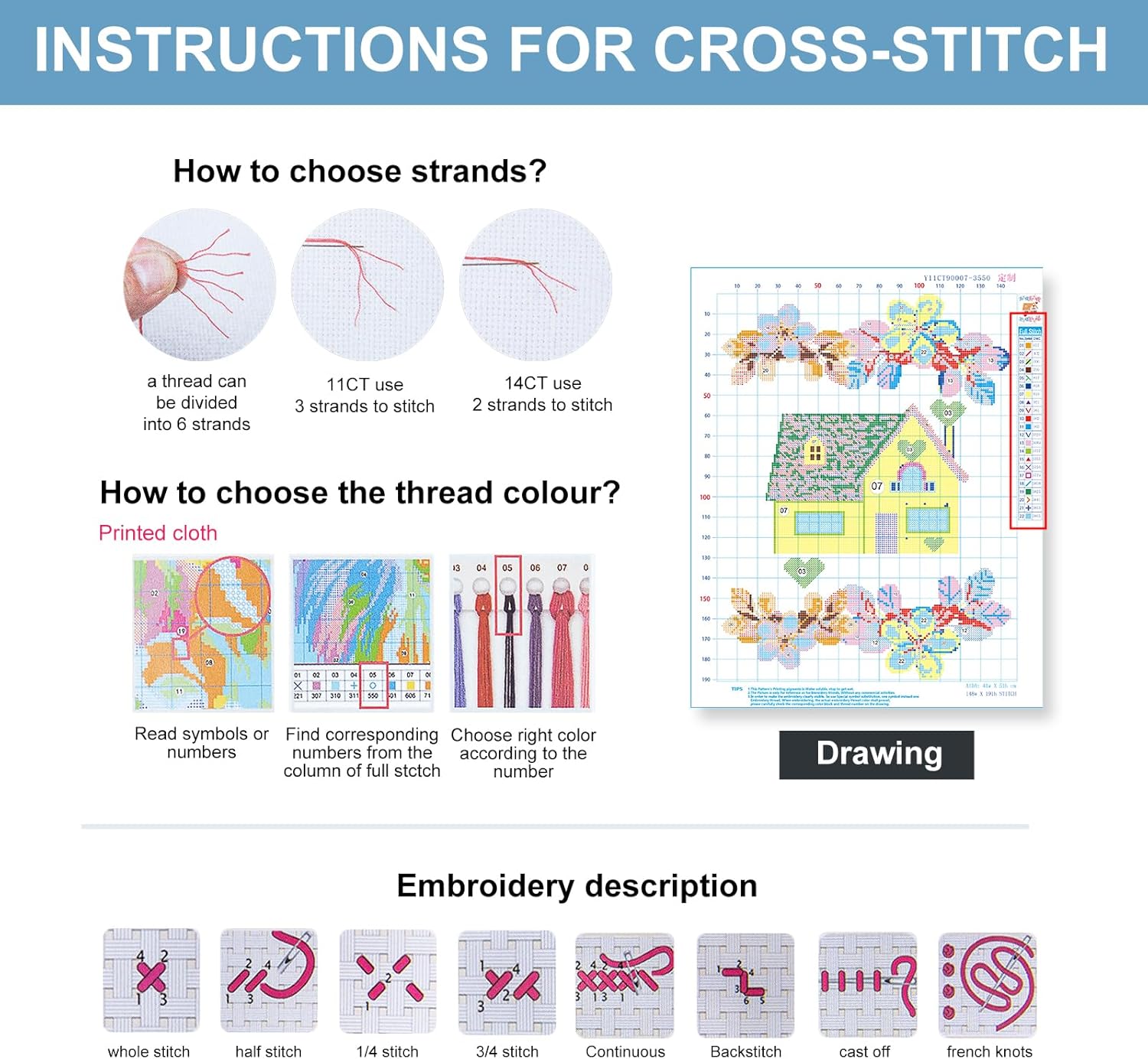 - 【precautions】Cross stitch patterns when not completed,do not touch the embroidery fabric with water to avoid unclear patterns and inconvenience to embroidery.