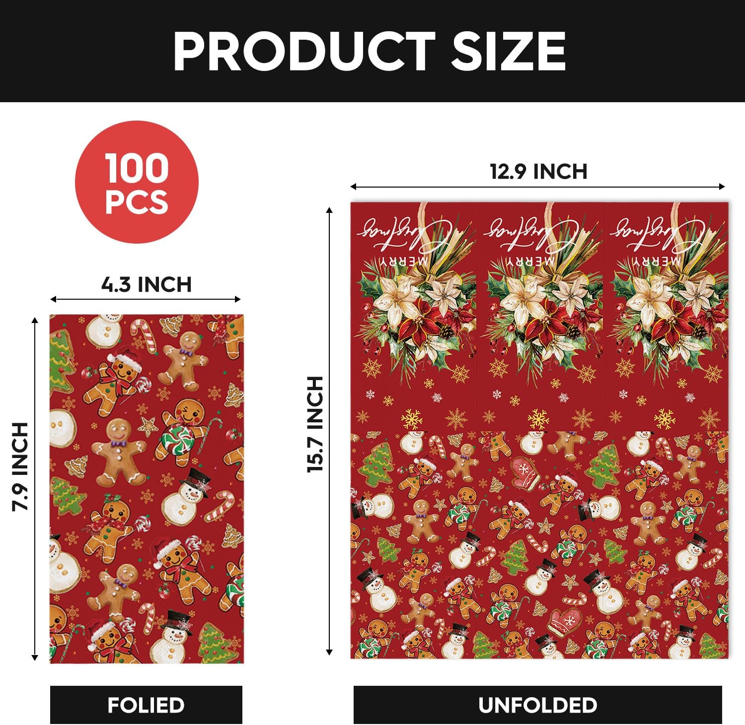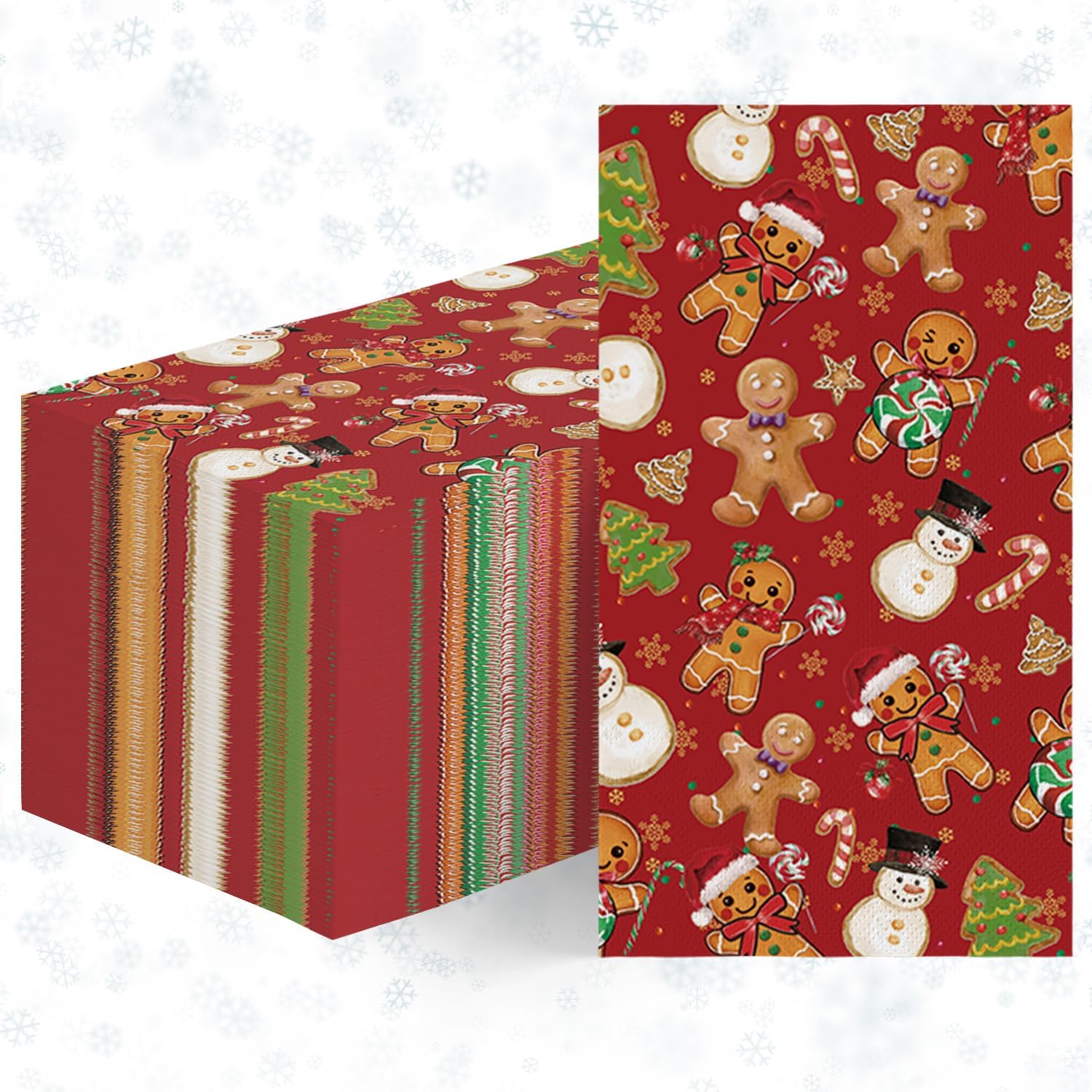 Horaldaily 100 Christmas Disposable Paper Decorative Guest Napkins, Gingerbread Man Hand Towel for Party Lunch Dinner Kitchen Bathroom