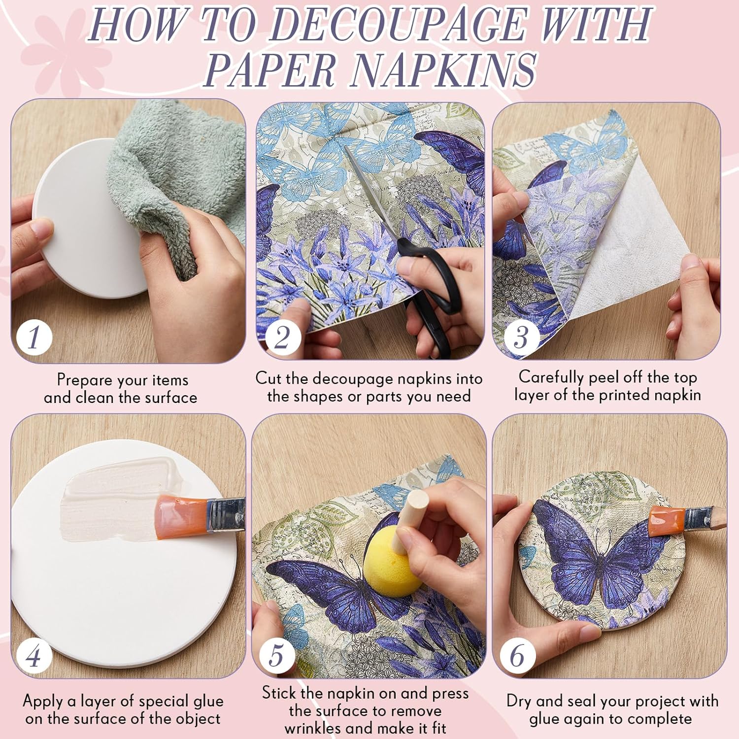 - Convenient Dimension: the 33 cm or approximately 13 inches size of the collage napkin panels is the right fit to ensure easy application; Additionally, when folded, the length is 6.5 inches, offering you a simple yet satisfying usage experience