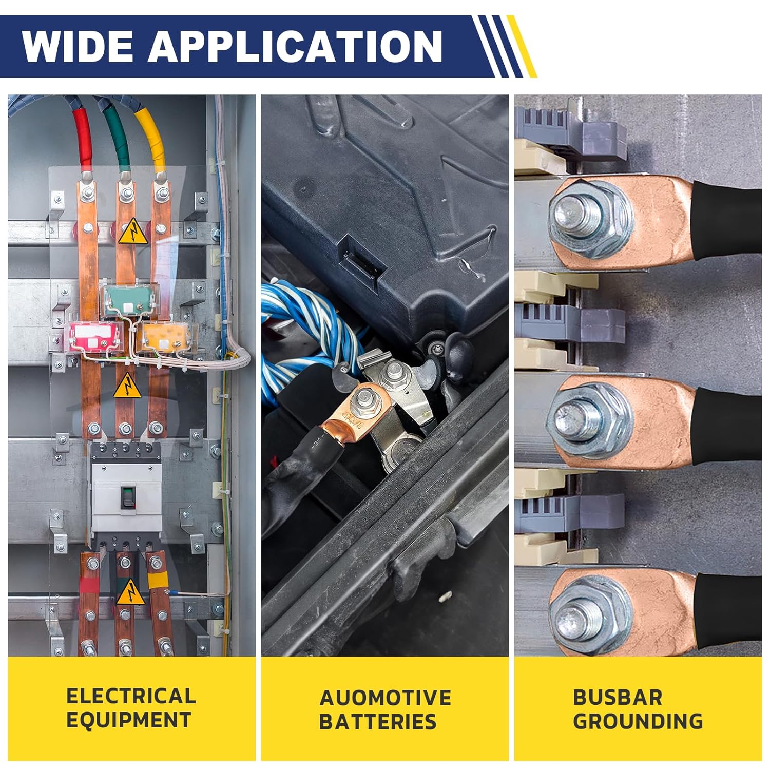 haisstronica 10pcs 4/0 AWG - 3/8"(M10) Battery Cable Lugs, Heavy Duty Copper Wire Lugs with 10pcs 3:1 Adhesive Heat Shrink Tubing, 0000 Gauge Wire Lugs, Battery Terminal Connector, Battery Cable Ends