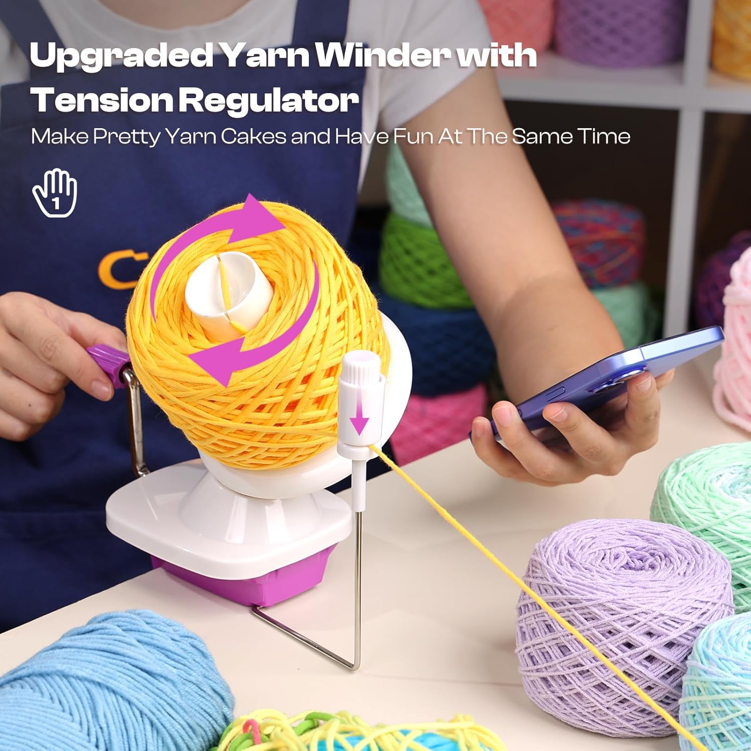 - Upgrade Efficient Yarn Winder: No more loose or uneven winding! No need to keep pulling the yarn by hand. Caydo Yarn winder is designed with adjustable tension spring, just one-hand operation for effortlessly transform loose yarns into compact yarn cakes in minutes! Solved the problem of traditional manual yarn winder