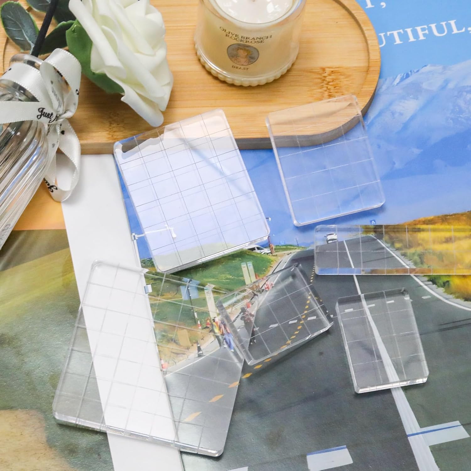 Pine & Linen 6 Pack Clear Stamp Blocks, Acrylic Tools Grid Lines Set, Scrapbooking Crafts for DIY Crafts/Scrapbooking/Card Making/Ornaments/Stamping Projects(Style-2)